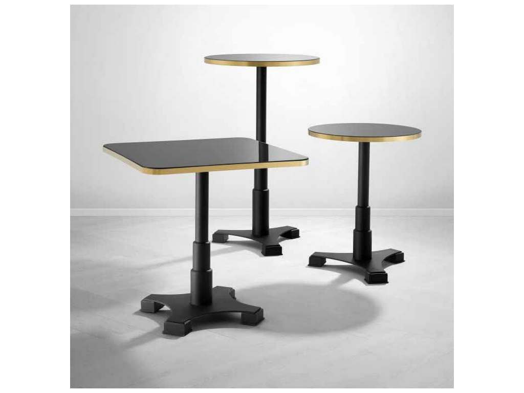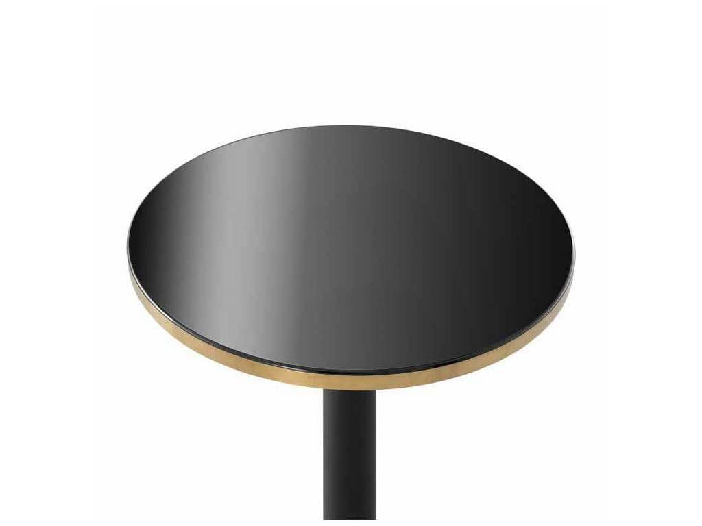 Product Description: Eichholtz 112084 Bar Table Avoria - Choose the Avoria Bar Table for a contemporary take on the traditional bar table. Ideal for intimate dinners and entertaining, this bar table is the perfect piece to anchor your eat-in kitchen or curated home bar ensemble. It features a sleek black base and a shiny black tabletop with brushed brass rim.