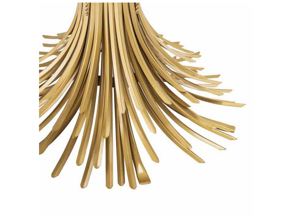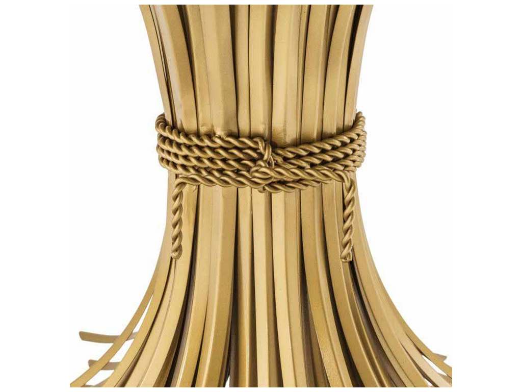 Product Description: Eichholtz 112128 Centre Table Bonheur - Sculpted from iron in an antique gold finish, the dazzling Bonheur Centre Table ø 130 cm includes a sheaf-shaped base and a bevelled clear glass tabletop. Originally a symbol of prosperity and hospitality, the sheaf signifies one has worked hard and is now enjoying the good life.