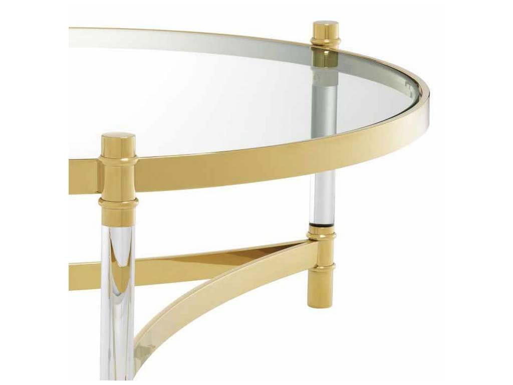 Product Description: Eichholtz 112313 Coffee Table Trento - The contemporary Trento Coffee Table comprises a gold finished frame with acrylic rods and a clear glass tabletop. Due to its transparent character this table allows the beauty of your interior surroundings to filter through.
