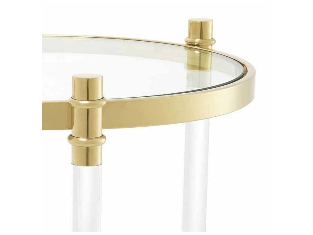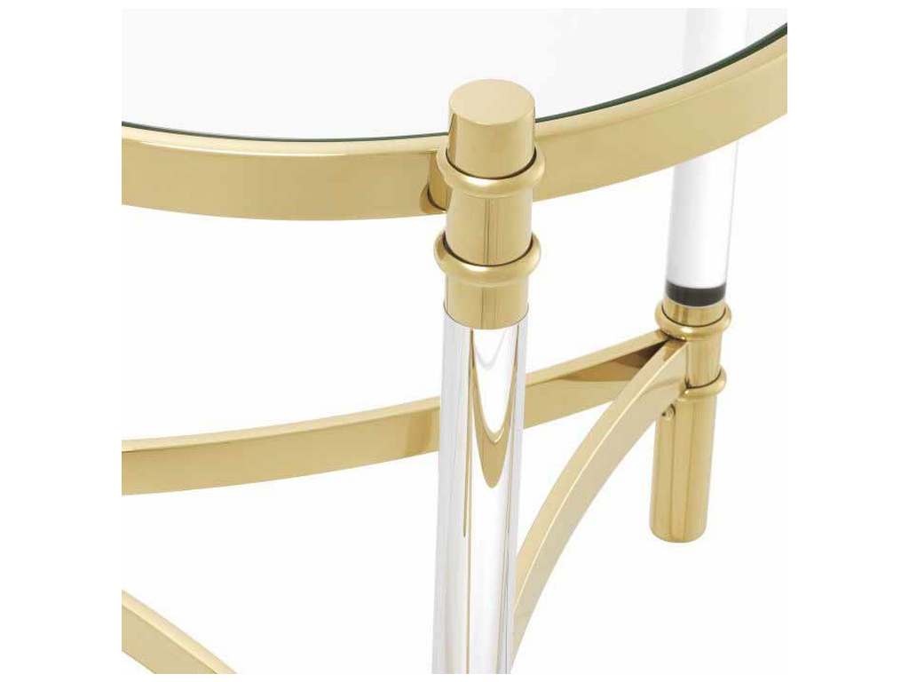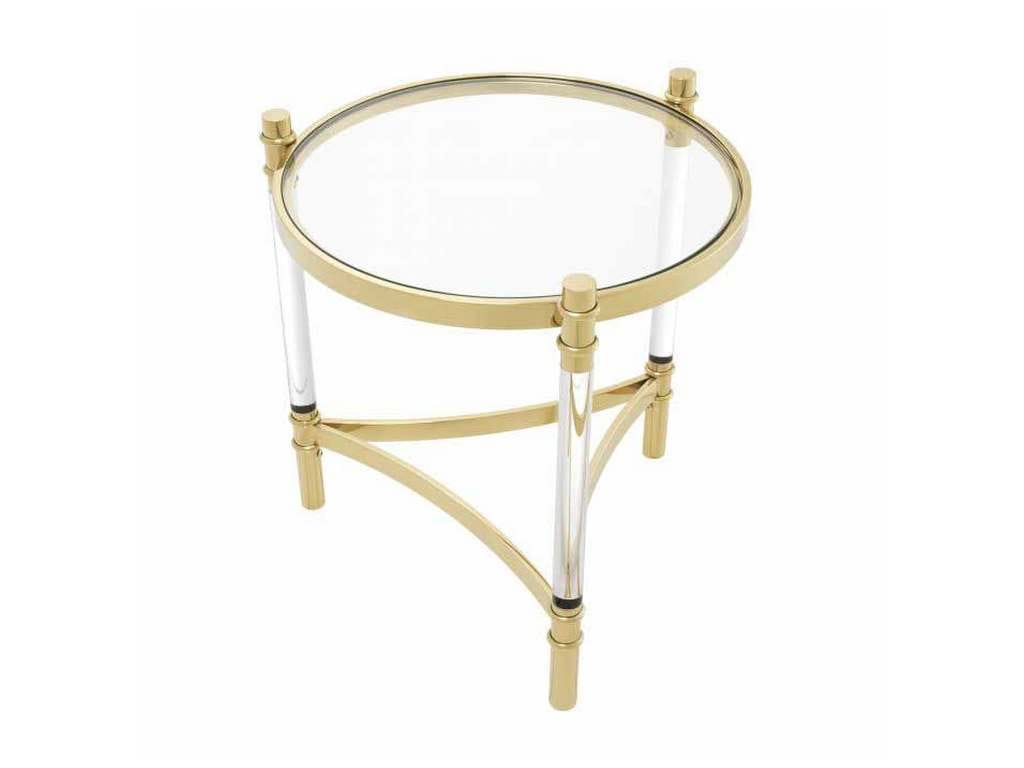 Product Description: Eichholtz 112314 Side Table Trento - The contemporary Trento Side Table comprises a gold finished frame with acrylic rods and a clear glass tabletop. Due to its transparent character this table allows the beauty of your interior surroundings to filter through.