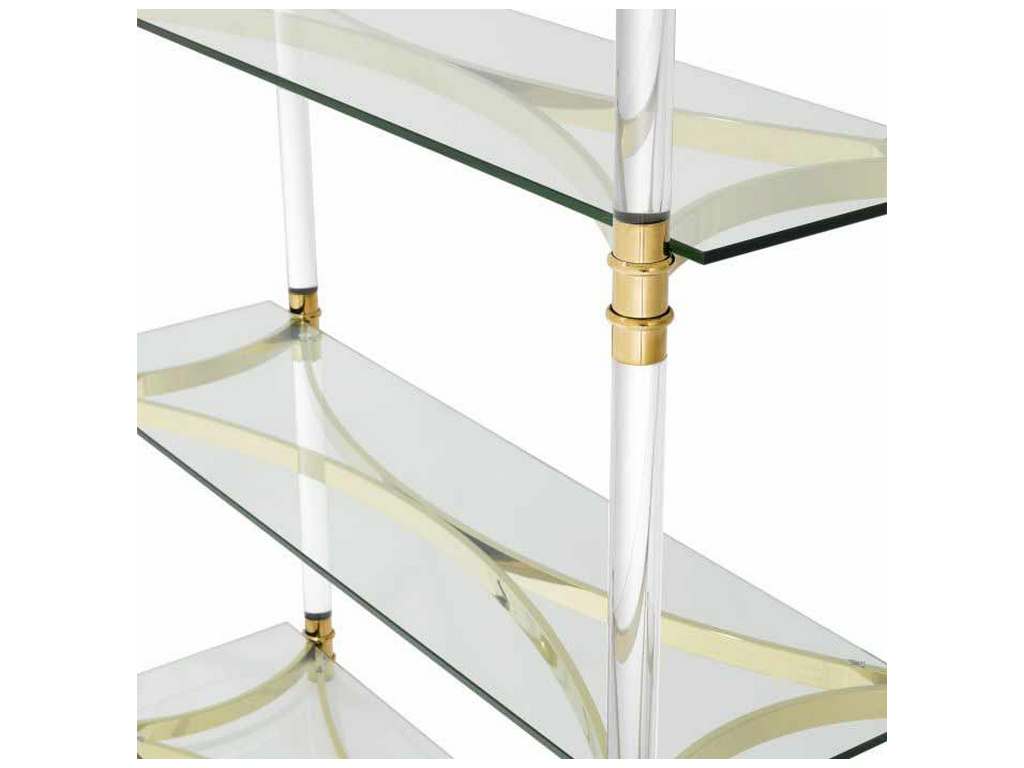 Product Description: Eichholtz 112316 Cabinet Trento - The contemporary Trento Cabinet comprises a gold finished construction with acrylic rods and 5 clear glass shelves. Due to its transparent character this cabinet allows the beauty of your interior surroundings to filter through.