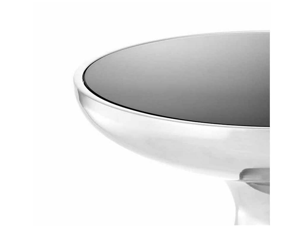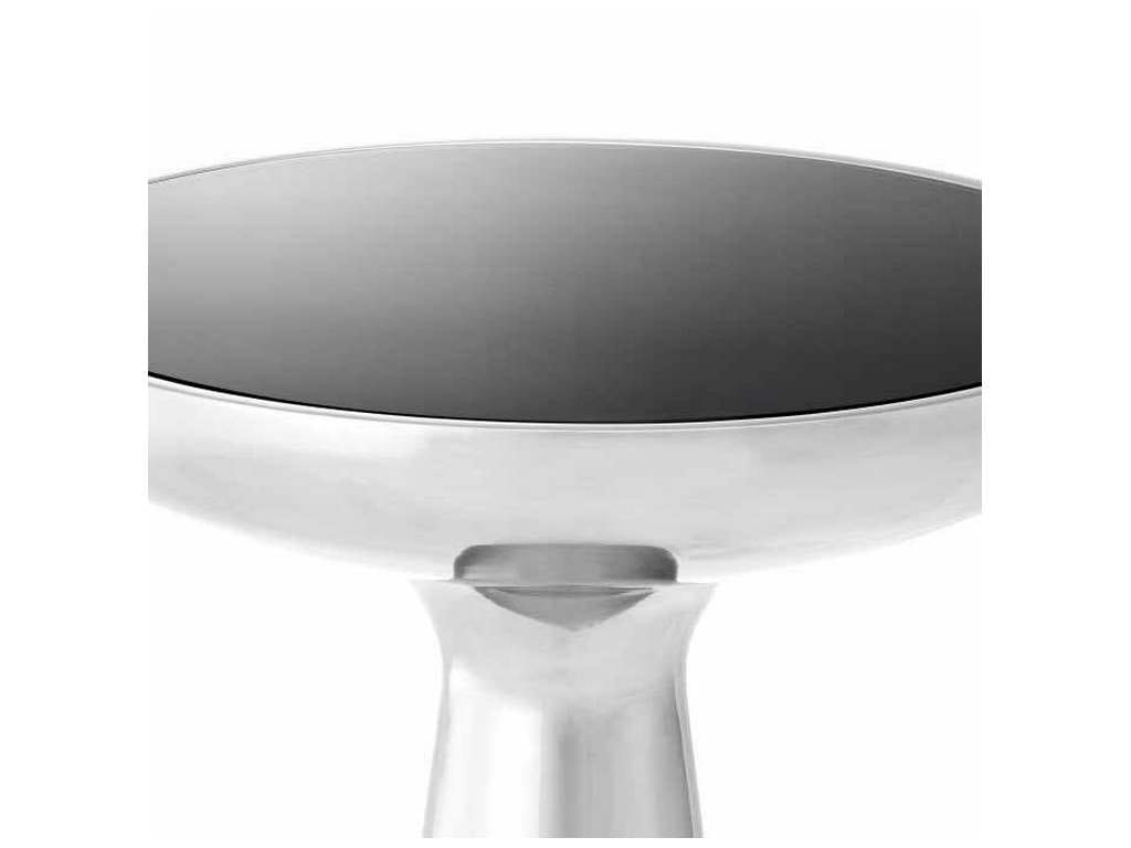 Product Description: Eichholtz 112558 Side Table Lindos Low - The organic shaped low Lindos Side Table takes style cues from mid-20th-century Scandinavian design furniture. This stunning round end table features a polished stainless steel base and a black glass tabletop.