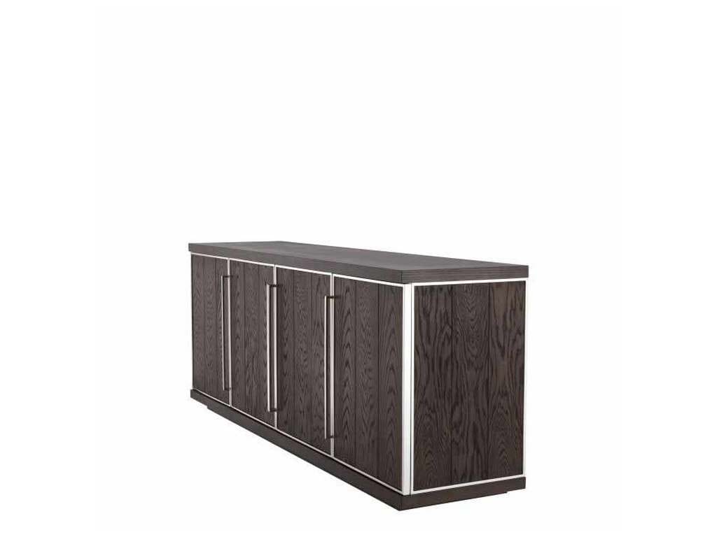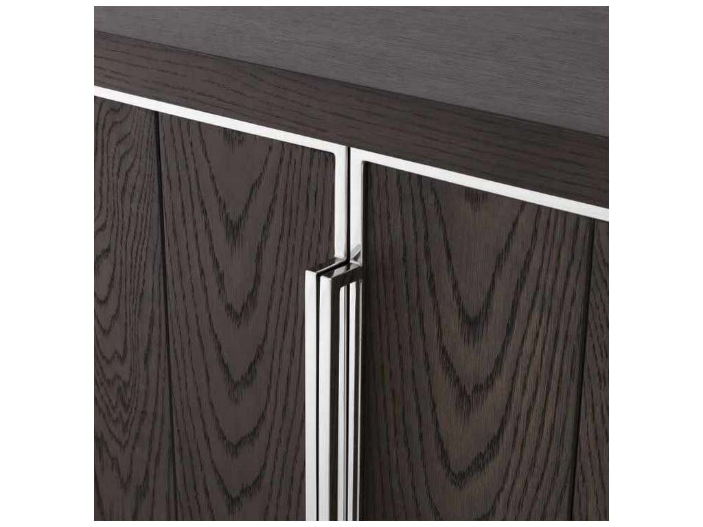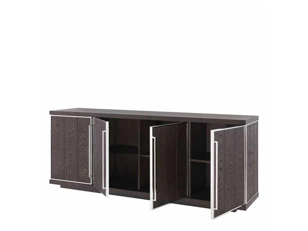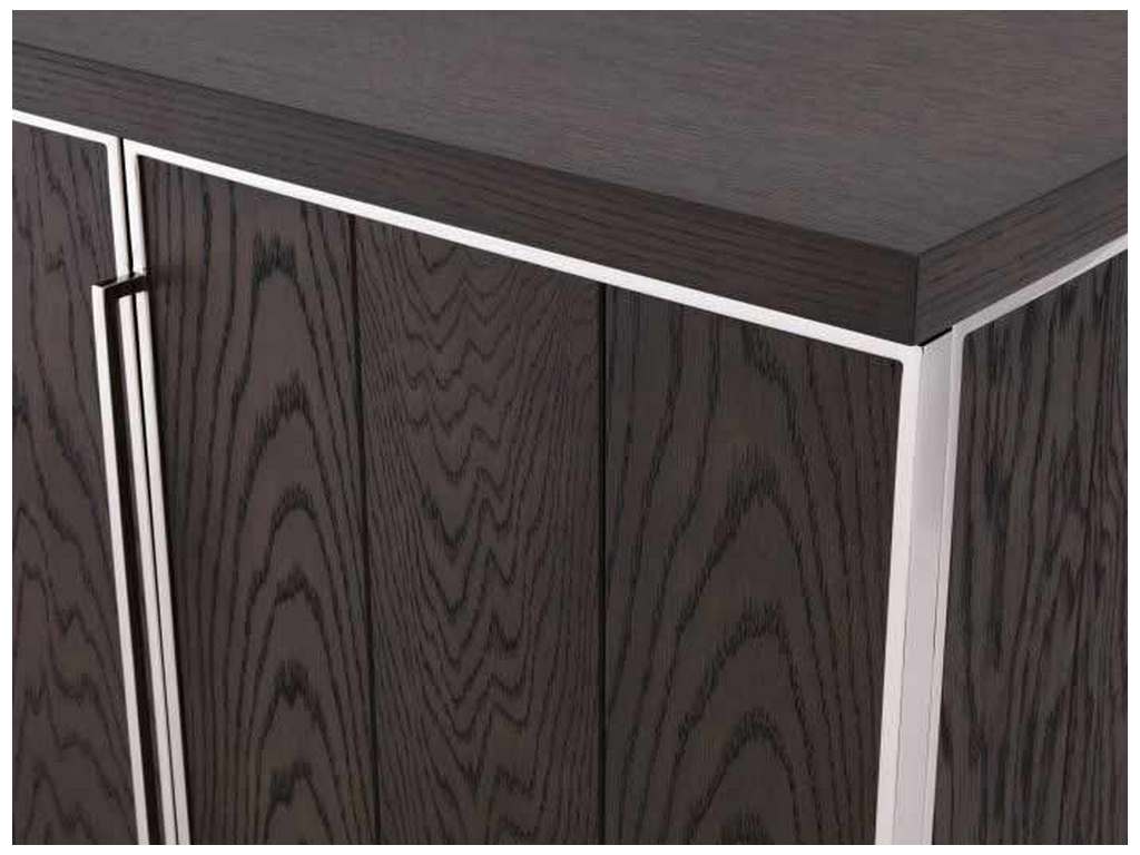 Product Description: Eichholtz 113101 Dresser Renzo - Add elegance to your living room with the classy Renzo Dresser. Exuding mid-20th century appeal, this stylish sideboard offers you posh storage space behind its 4 doors. Showcasing natural wood patterns, the mocha oak veneer doors are genuine eye-catchers. The high-quality finish in polished nickel is the cherry on the cake.