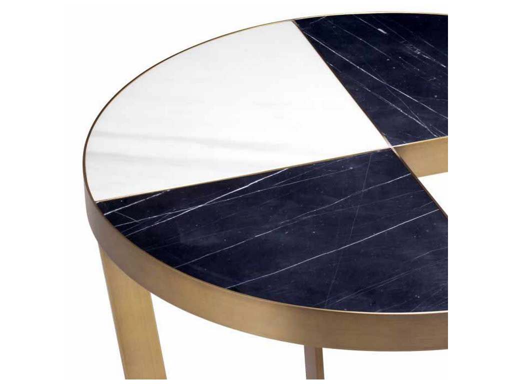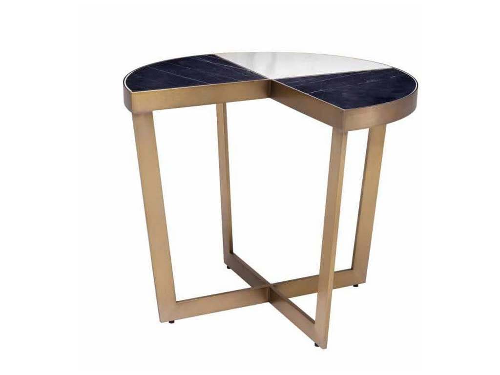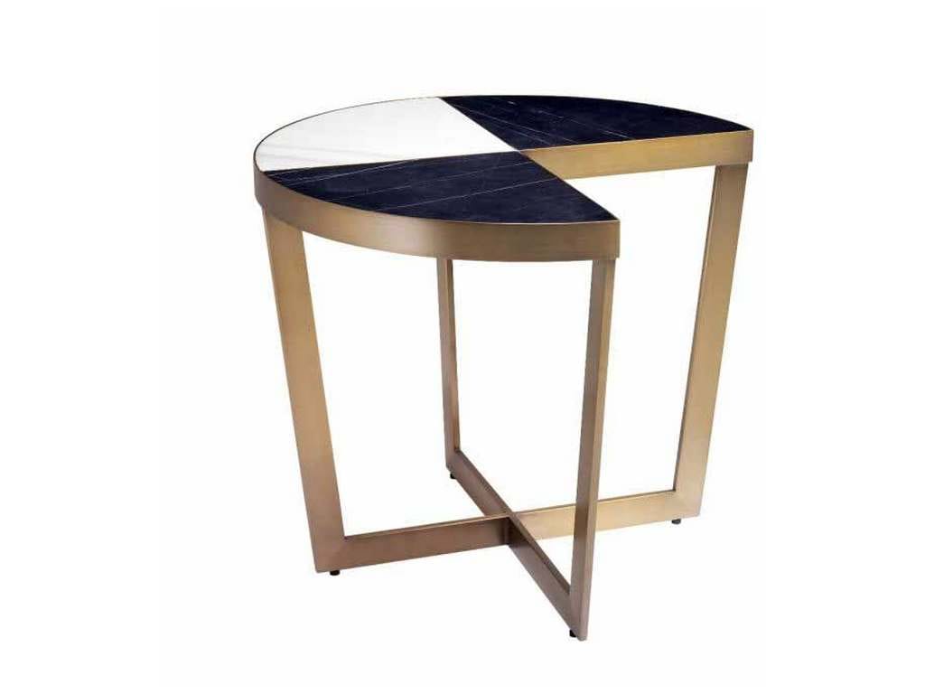Product Description: Eichholtz 113586 Side Table Turino - Recall the glamour of Hollywood Regency with the Turino Side Table. The tabletop comprises quarter parts of black and white marble and has a metal rim and legs with a brushed brass finish. One quarter of the tabletop has been cut out so this side table can seamlessly connect to your sofa or armchair.