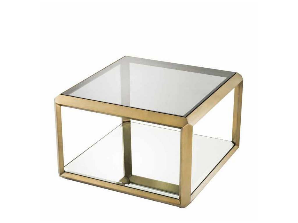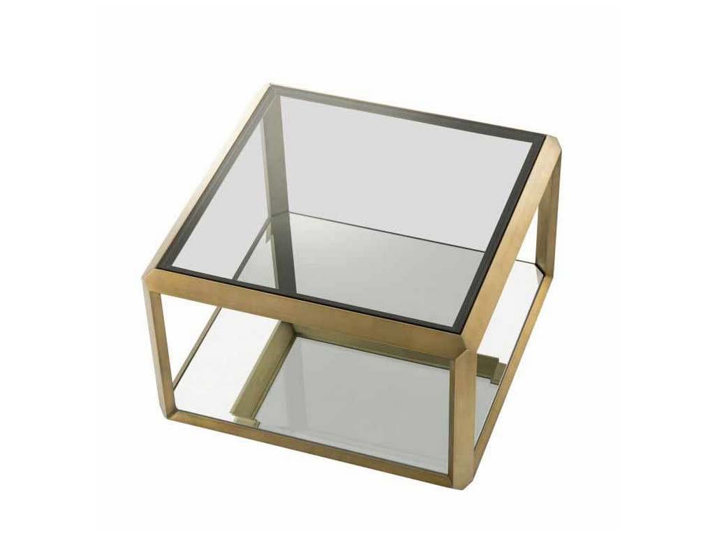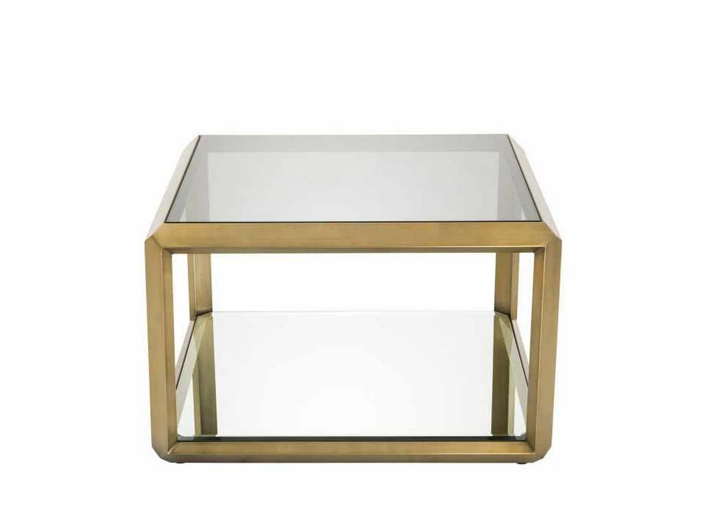 Product Description: Eichholtz 113640 Side Table Callum - Evoke the seductive style of the seventies with the decadent Callum Side Table. Its brushed brass frame with bevelled rims surrounds the tabletop of smoke glass and the bottom shelf of mirror glass. Whether you are going for a retro or contemporary look, this stylish side table will be a perfect choice.