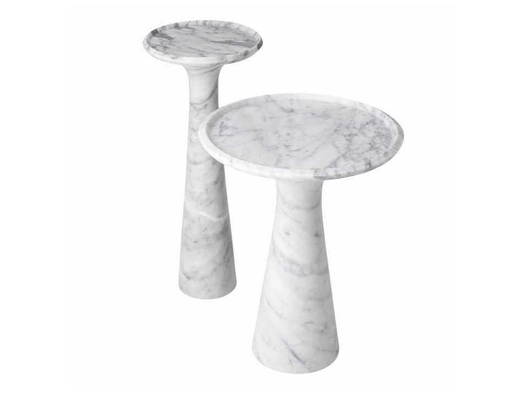 Product Description: Eichholtz 113748 Side Table Pomano High - Exuding Palm Springs aesthetic, the high Pompano Side Table recalls the atmosphere of the Californian riviera. It is crafted from solid Italian Carrara marble in a seventies style shape. The top has a raised edge. We love to combine the low and high version of this table to create a stunning set.