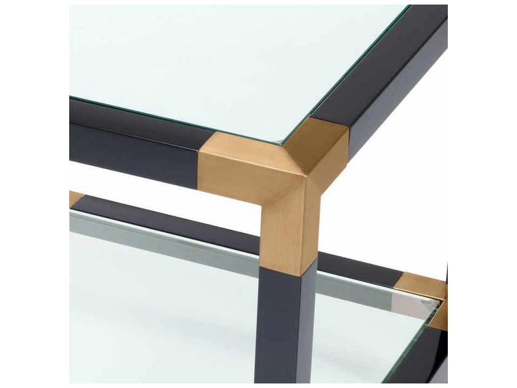Product Description: Eichholtz 113842 Side Table Royalton - Enjoy the Bauhaus designer appeal of the Royalton Side Table. Its piano black frame features a tabletop and lower shelf of clear glass. Corners and legs with a brushed brass finish complete the modern aesthetic.