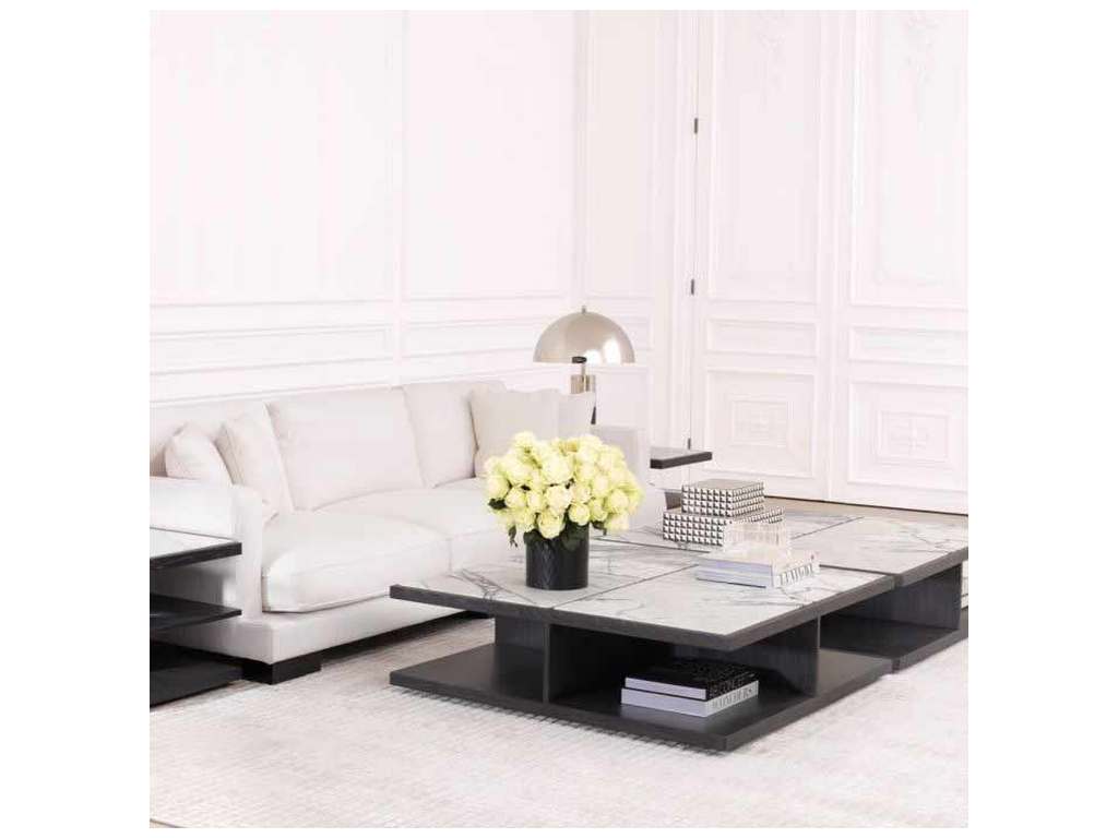 Product Description: Eichholtz 113935 Coffee Table Miguel - With its tabletop of Italian bianco lilac marble and niches in charcoal grey oak veneer, the quartered Miguel Coffee Table exudes luxury and modernity. The high class top of this charming piece of furniture will naturally attract vases and stylish accessories, while the niches offer storage space for books, magazines, remotes and the like.