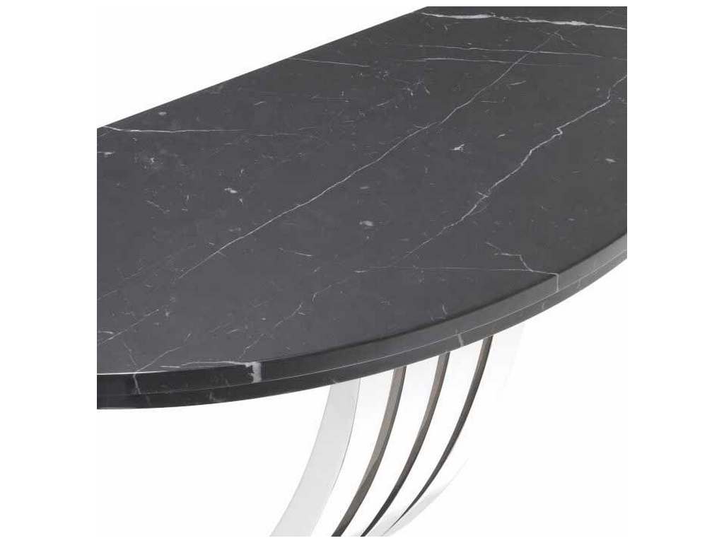 Product Description: Eichholtz 113965 Console Table Renaissance - The gracious Renaissance Console Table is a delightful addition to any traditional interior decor. Its black marble semi-circular table top on 4 beautifully curved legs from polished stainless steel is stylishly confident. The curled feet on a black granite base make this classic console table a beautiful, striking item for your hallway or living room.