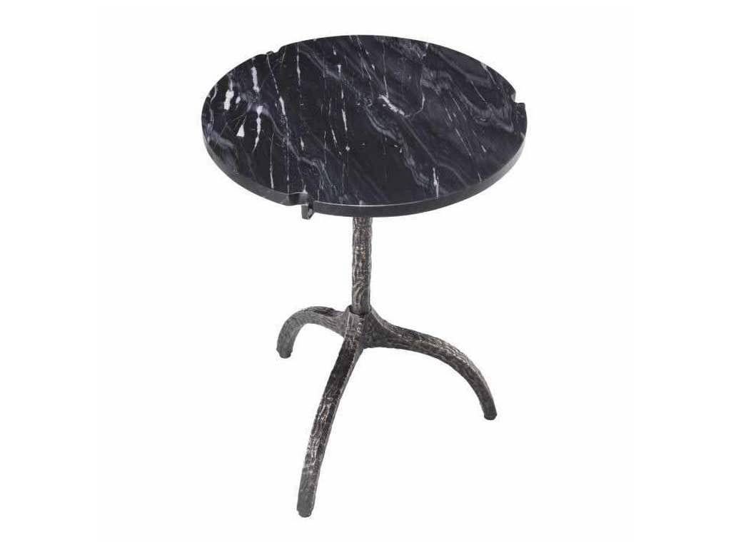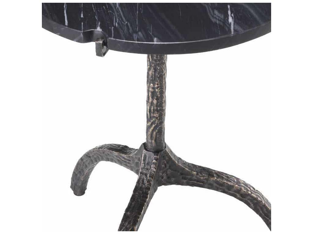 Product Description: Eichholtz 114139 Side Table Cortina - Whether starring beside your sofa or acting as a nightstand in the master bedroom, the Cortina Side Table is always a charming stage. This bistro style end table has a round top from black marble and a hammered brass base in a highlighted bronze finish.?