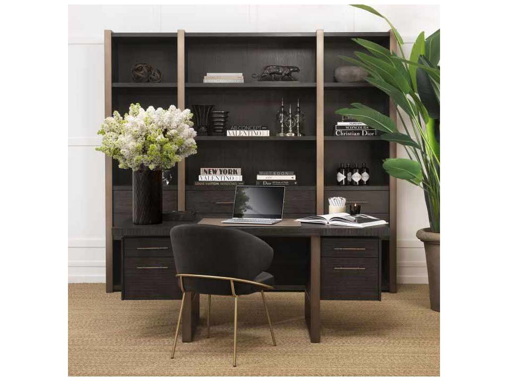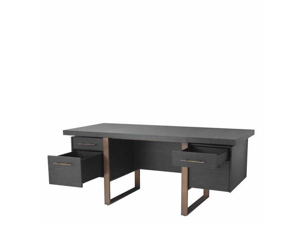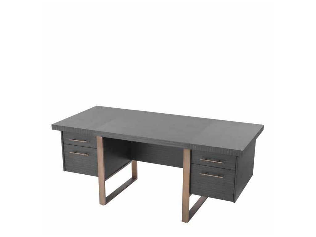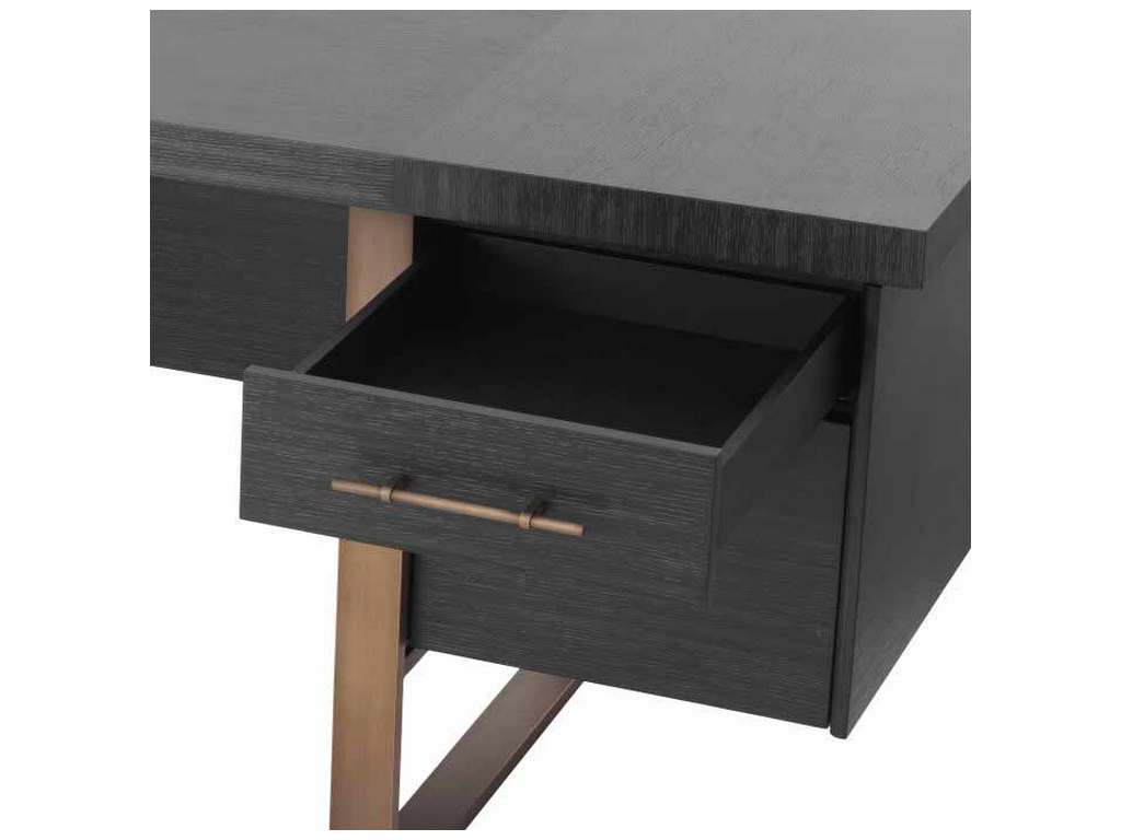 Product Description: Eichholtz 114207 Desk Canova - Suitable for office and residential use, the luxurious Canova Desk is a real eye-catcher in any contemporary interior. This stunning writing desk is characterised by two U-shaped legs in brushed brass finish holding two chests of drawers and a rectangular top in charcoal grey oak veneer.