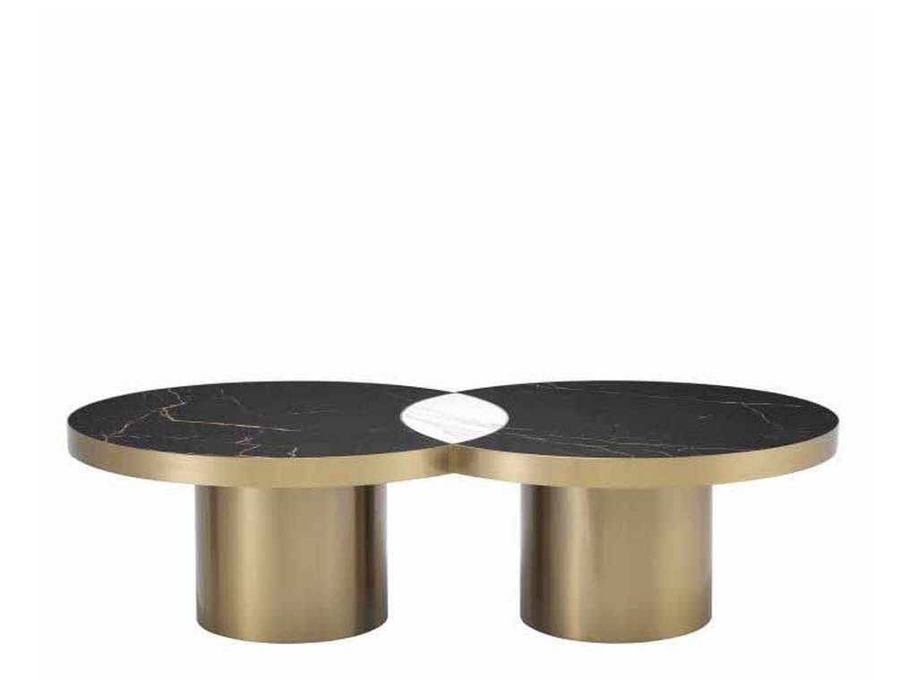 Product Description: Eichholtz 114399 Coffee Table Breakers - The ceramic table top of Coffee Table Breakers looks like two overlapping circles. To emphasise this stunning design the part that overlaps is white whereas the other parts are black. The marble look of the top is complemented by the brushed brass finish frame that consists of two sturdy pillars.