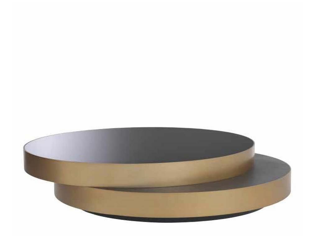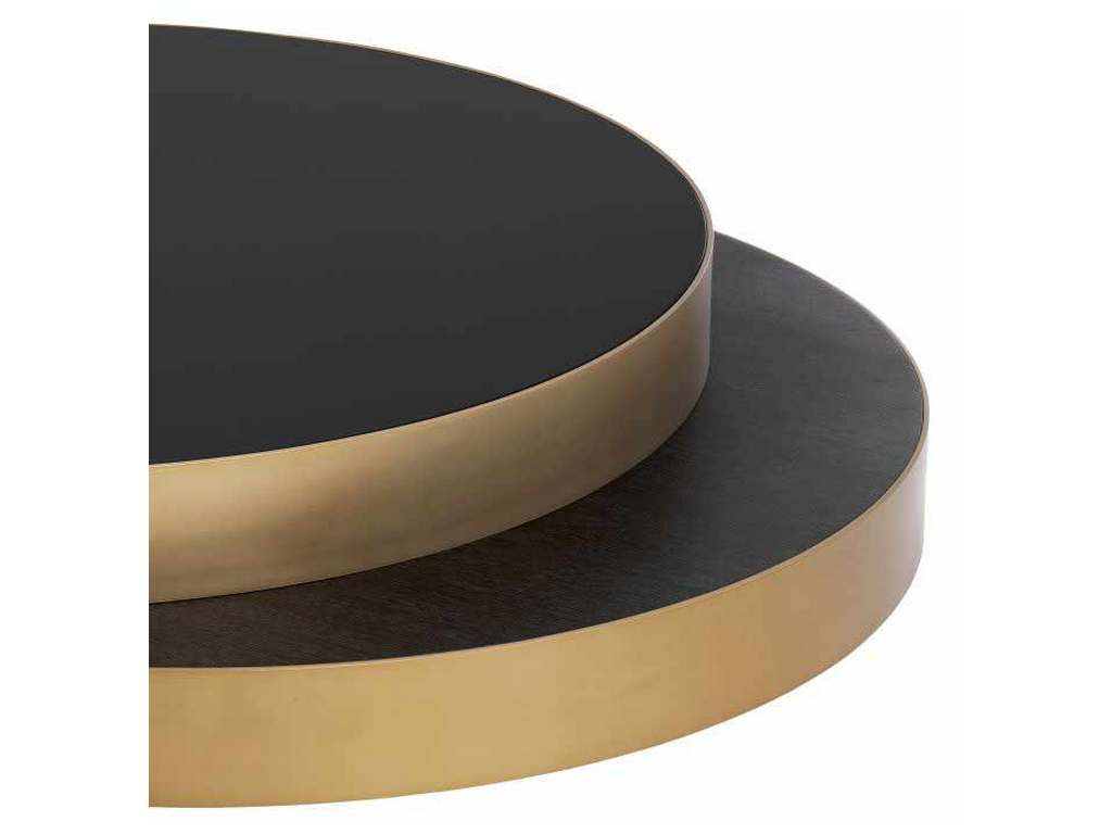 Product Description: Eichholtz 114419 Coffee Table Griffith - Create an extravagant new look in your living room with Coffee Table Griffith. This quirky design features two overlapping discs with a brushed brass rim. The lower disc has a top of charcoal grey oak veneer, the upper one has a top of black glass.