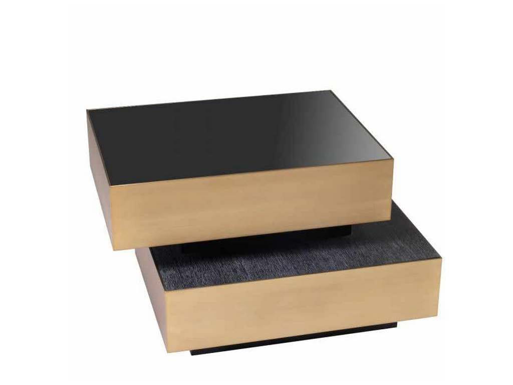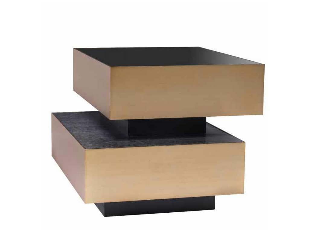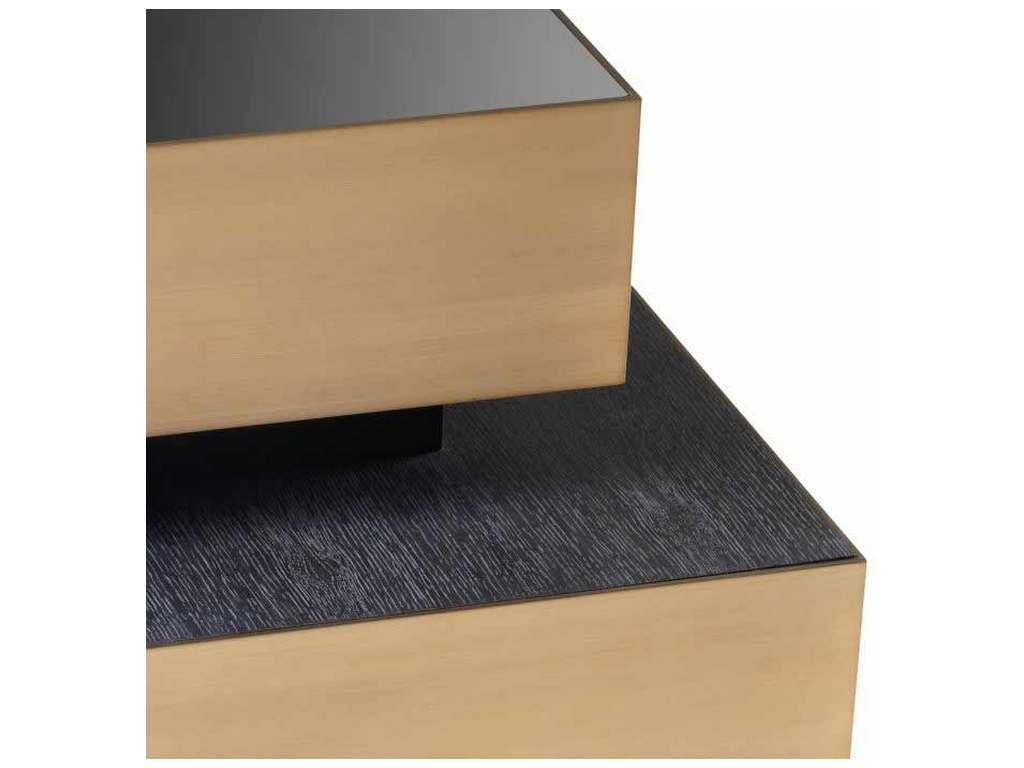 Product Description: Eichholtz 114434 Side Table Shelton - Create an extravagant new look in your living room with Side Table Shelton. This quirky design features two overlapping squares with a brushed brass rim. The lower square has a top of charcoal grey oak veneer, the upper one has a top of black glass.