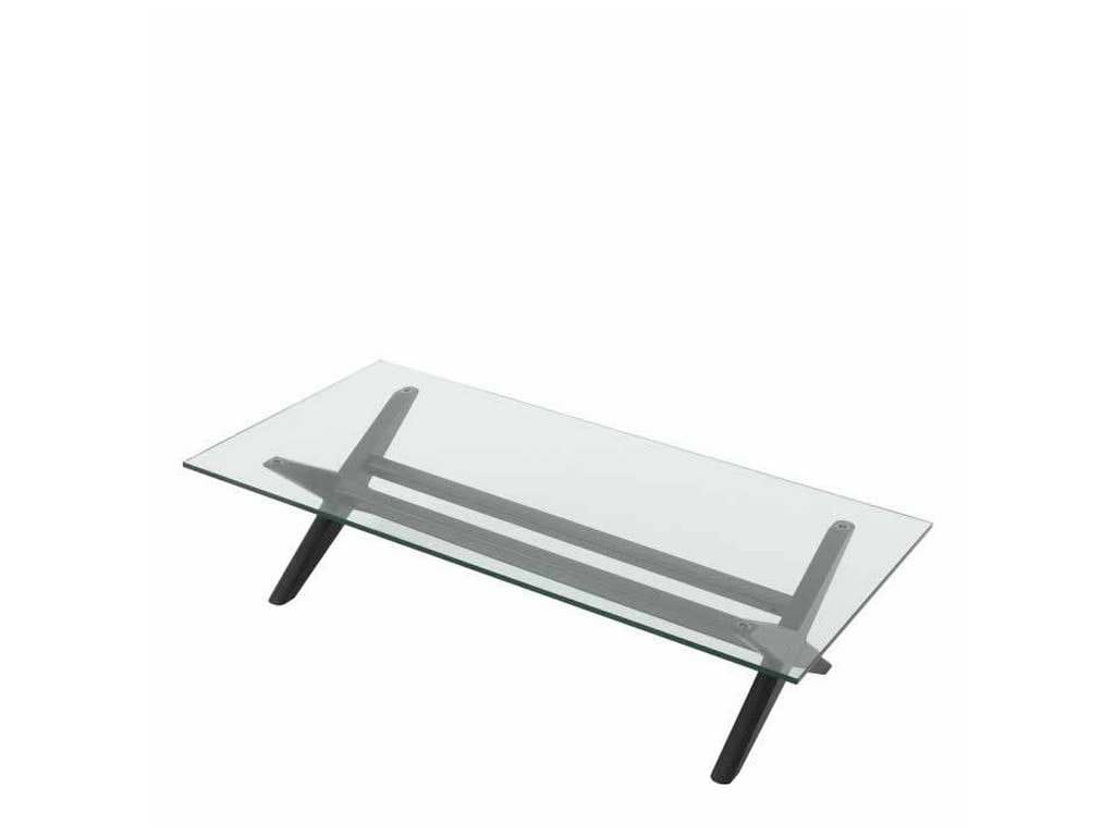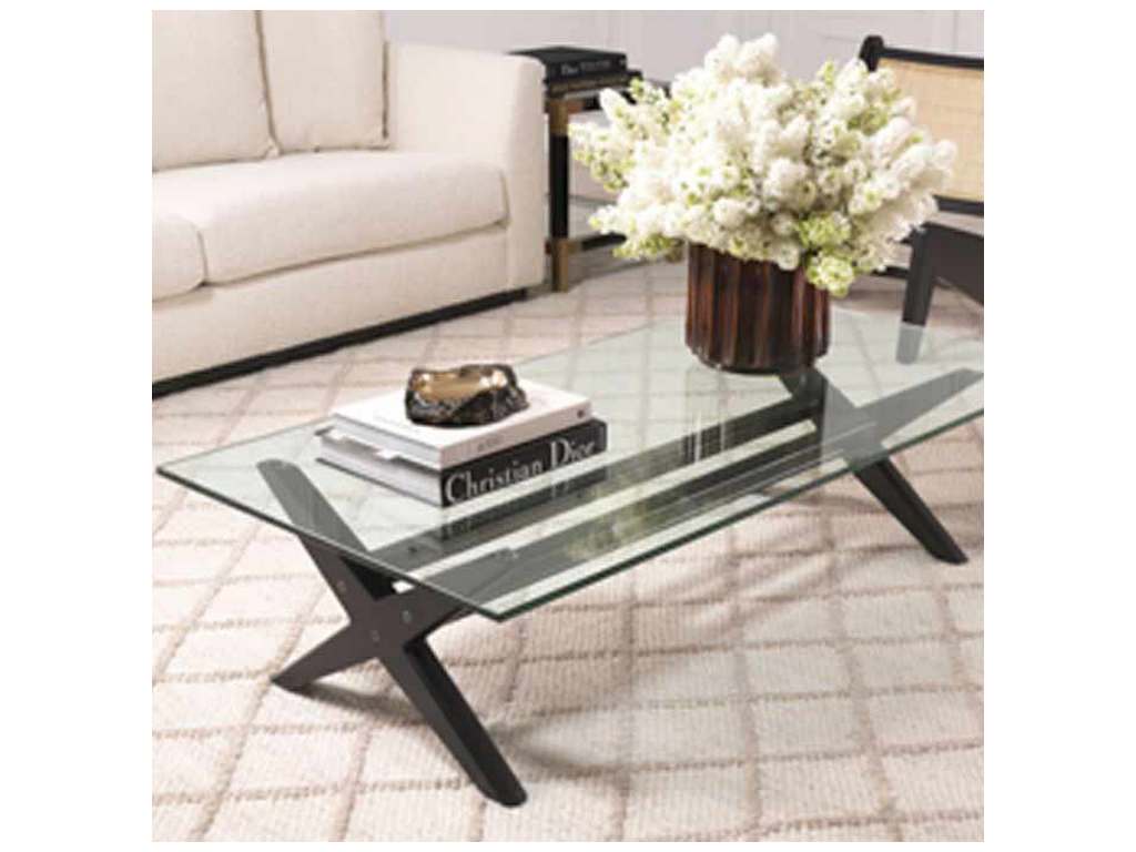 Product Description: Eichholtz 114499 Coffee Table Maynor - Pairing simplicity with quality, the classic black Maynor Coffee Table reminds one of iconic Chandigarh furniture from the 1950s and 1960s. Crafted from solid wood and provided with a thick clear glass table top, this sturdy piece features the X-shaped legs that are characteristic for celebrated minimalist designs.