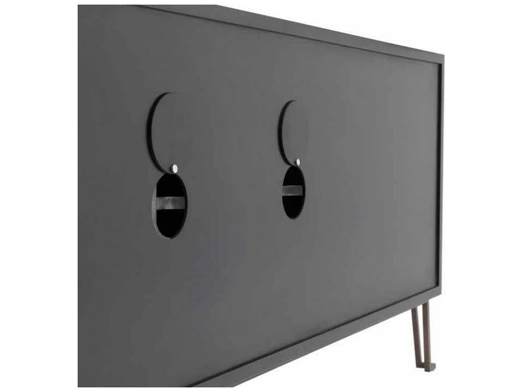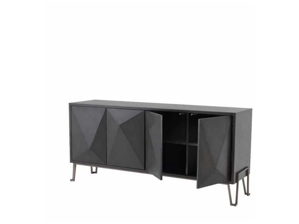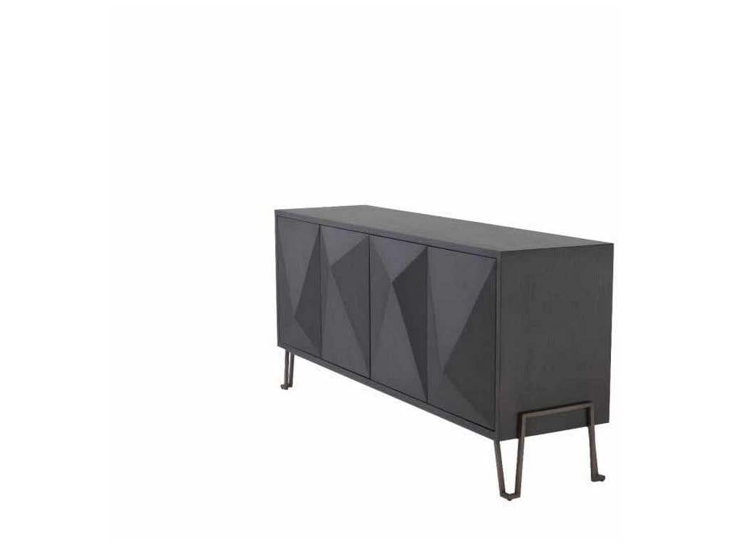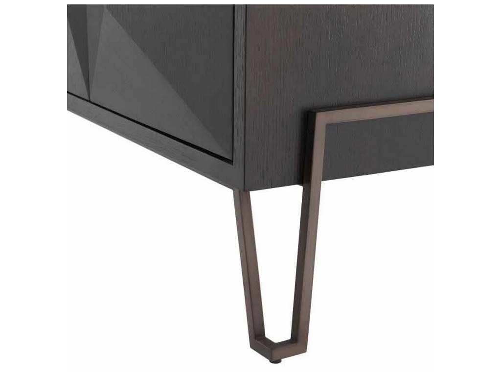 Product Description: Eichholtz 114527 Dresser Highland - Dresser Highland consists of a charcoal brown oak veneer case on a medium bronze finish frame. With their remarkable triangular silhouettes, the cabinet doors are real eye-catchers. It's also suitable for use as a TV Cabinet as there is a cable outlet at the back.