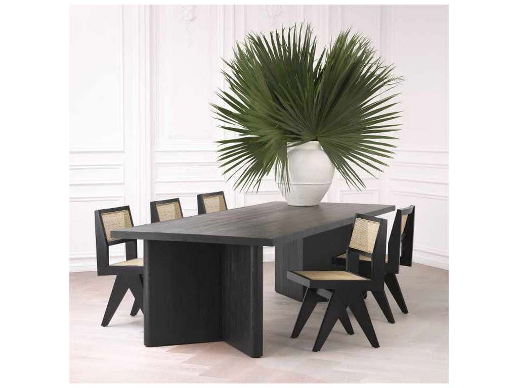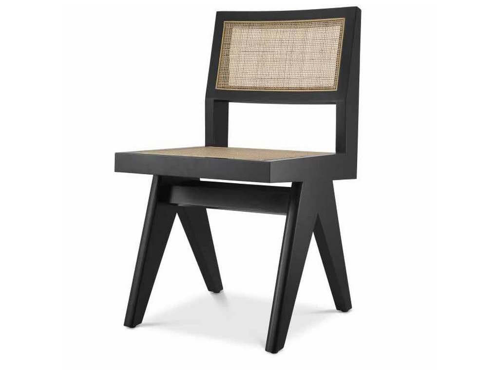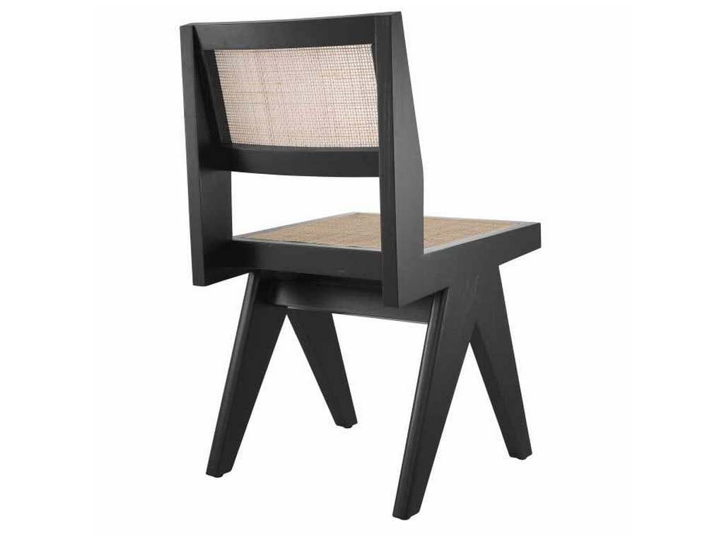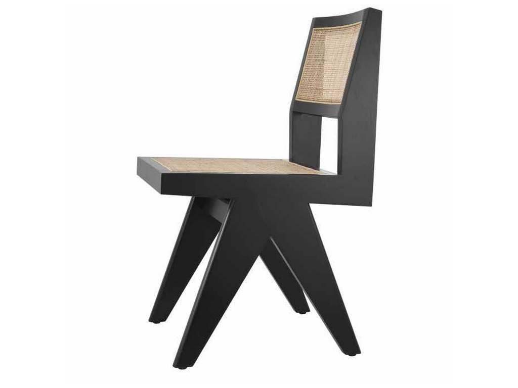 Product Description: Eichholtz 114737 Dining Chair Niclas - The classic black Niclas Dining Chair has the minimalist appeal of iconic Chandigarh furniture. Crafted from solid wood, this beautiful chair features the V-shaped legs that are characteristic of celebrated vintage designs from the 1950s and 1960s. The openwork seat and backrest comprise handwoven rattan cane.