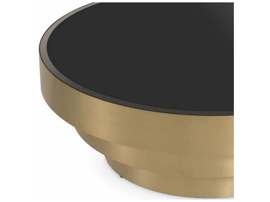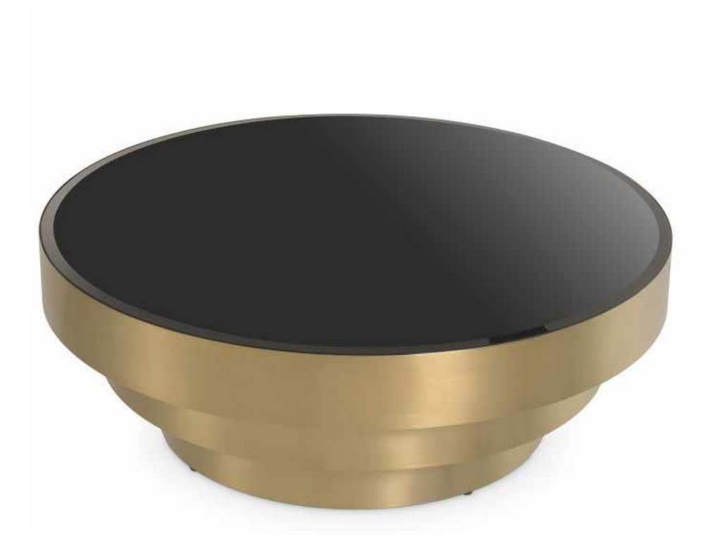 Product Description: Eichholtz 114759 Coffee Table Sinclair - Coffee Table Sinclair stands out for its telescopic design. It looks like the tubular parts are designed to slide into each other. Provided with a brushed brass finish, this remarkable coffee table is topped with a round plate of bevelled black glass.