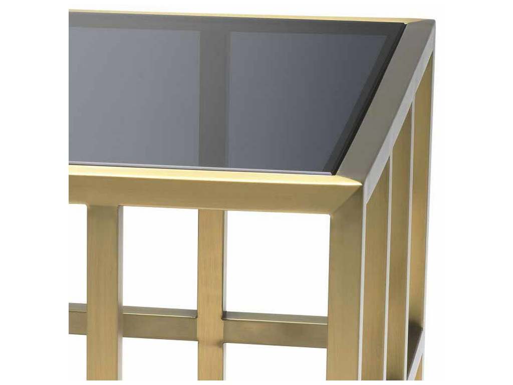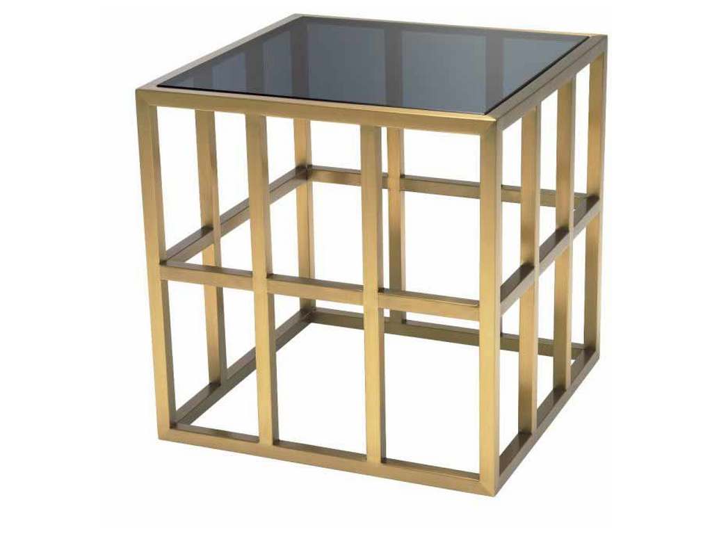 Product Description: Eichholtz 114767 Side Table Lazare - Looking for a sleek and glamorous end table? Like a piece of modern art, Side Table Lazare features a smoke glass panel on a geometric frame with brushed brass finish for optimal visual appeal. This modern end table will make your home feel stylish and welcoming to everyone who comes to visit.