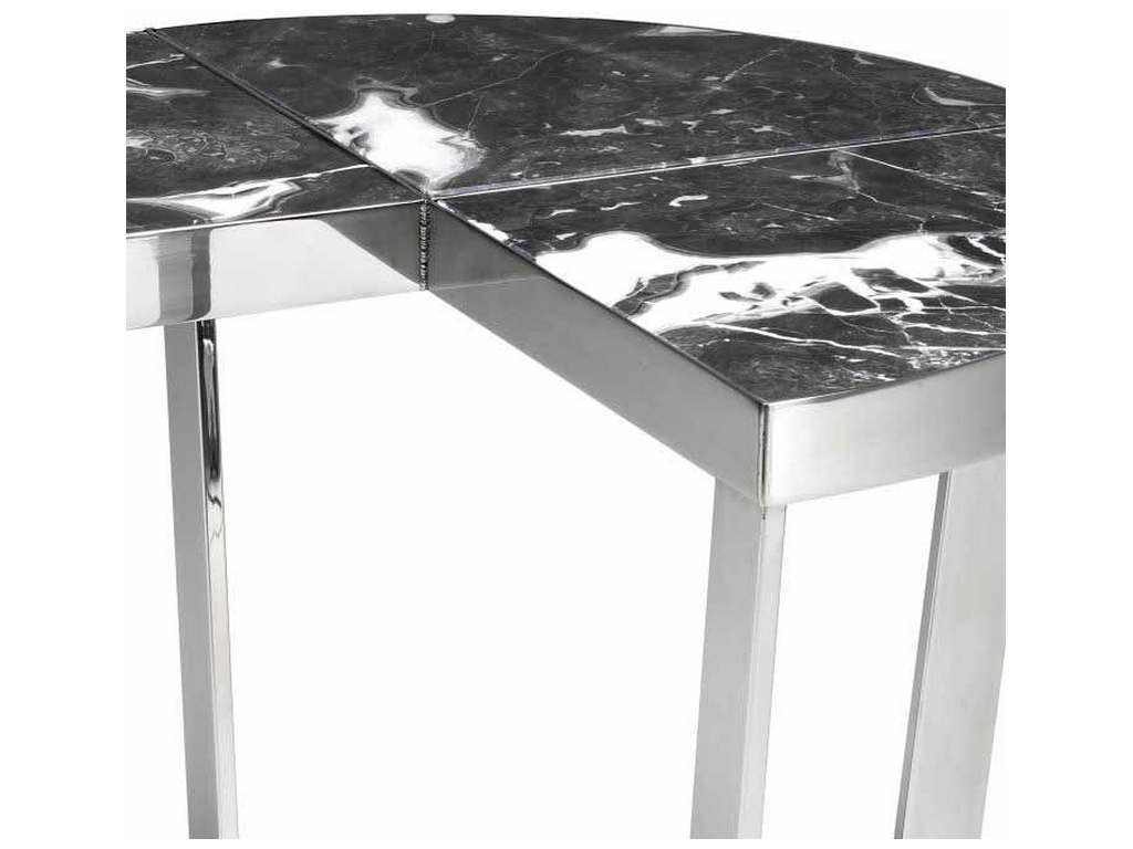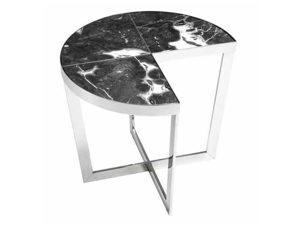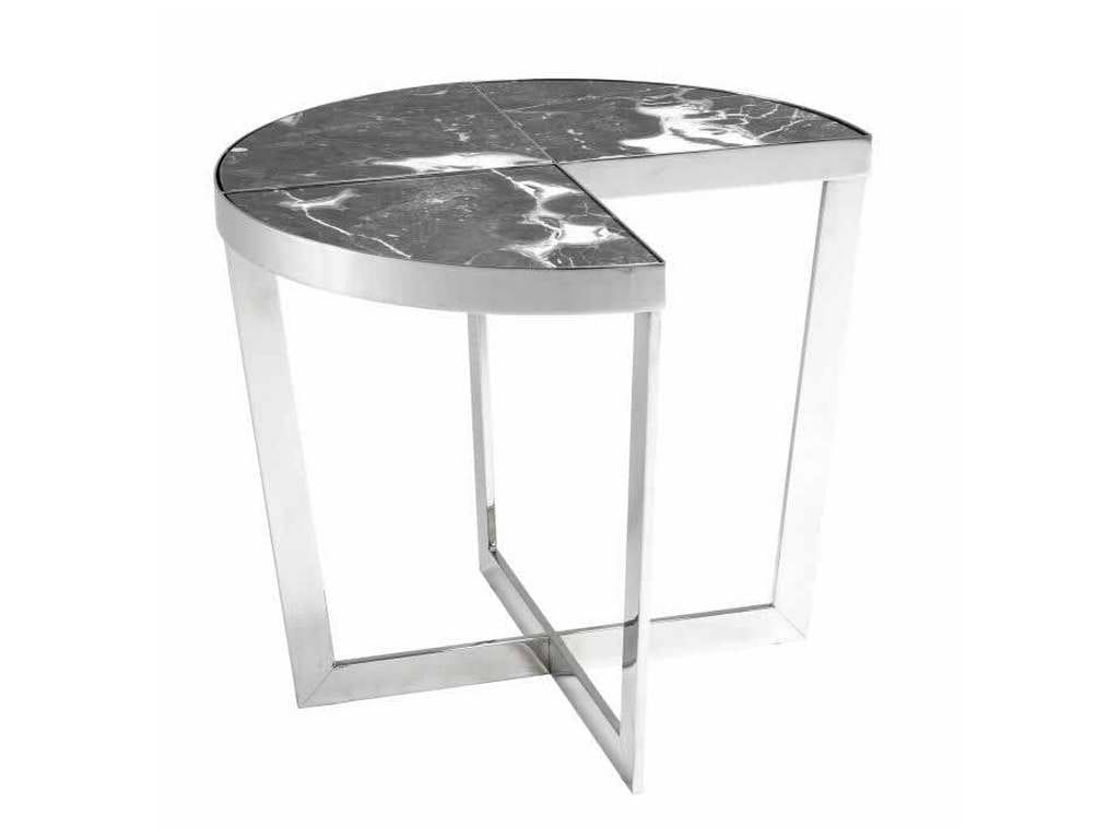 Product Description: Eichholtz 114769 Side Table Turino - Recall the glamour of Hollywood Regency with the Turino Side Table. Set in a frame of polished stainless steel, the tabletop comprises three quarter parts of grey marble. One quarter has been cut out so this side table can seamlessly connect to your sofa or armchair.