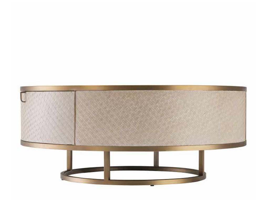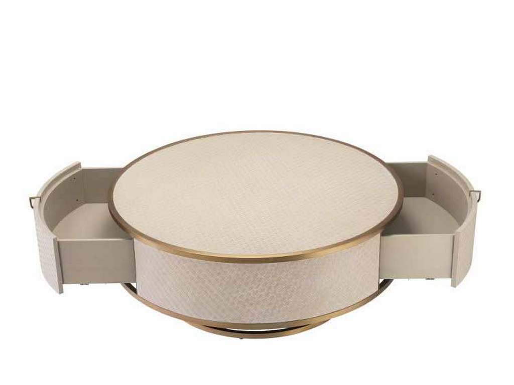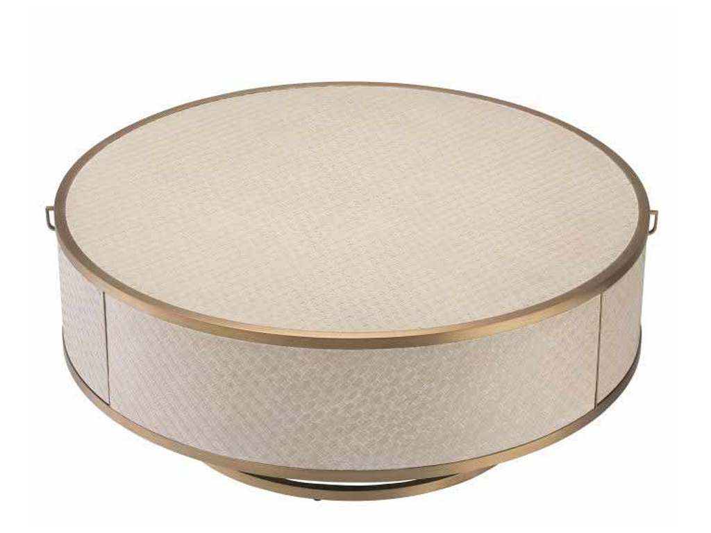 Product Description: Eichholtz 114777 Coffee Table Napa Valley - Pairing Bauhaus style with a Mid-Century Modern look, the beautiful drum-shaped Napa Valley Coffee Table features a stainless steel frame and is lined with woven oak veneer. Two large drawers with stainless steel handles offer ample storage space.