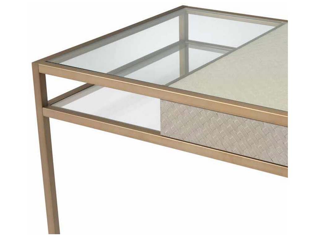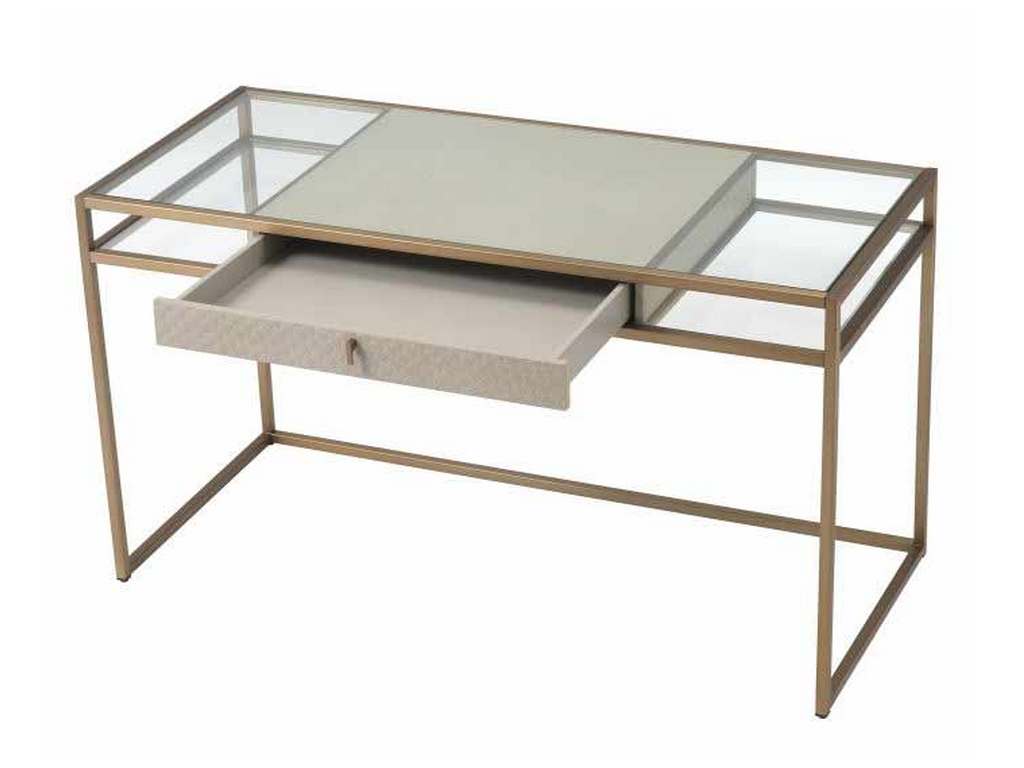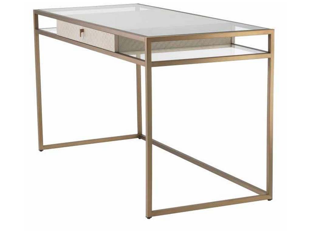 Product Description: Eichholtz 114780 Desk Napa Valley - Pairing Bauhaus style with a Mid-Century Modern look, the Napa Valley Desk showcases a sleek frame with brushed brass finish, a clear glass top and a drawer of woven washed oak veneer.
