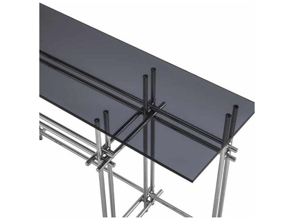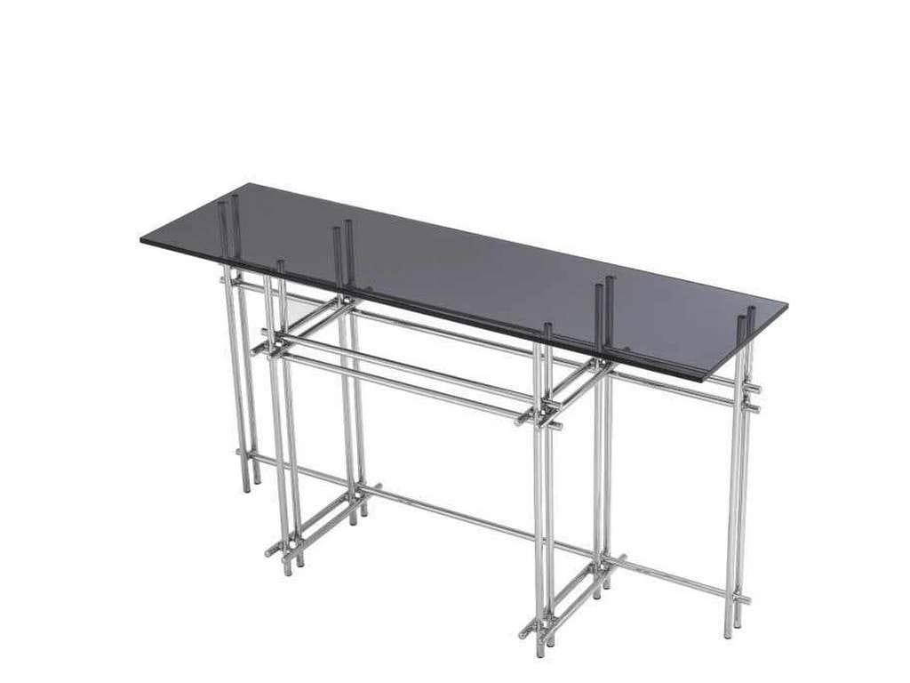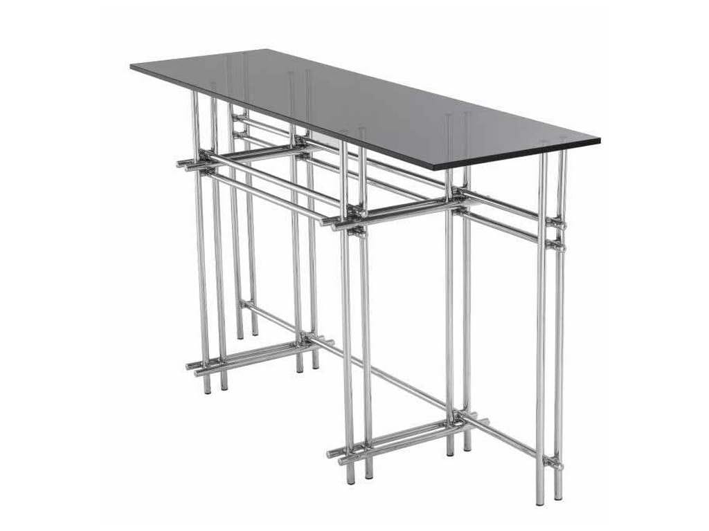Product Description: Eichholtz 114804 Console Table Quinn - High style is at the beating heart of the enchanting Quinn console table. Its sturdy base of polished stainless steel is formed by an intriguing interplay of bars. With a chic tabletop of smoke colour glass, this elegant-looking console table will give any luxurious interior space a touch of decadence and design. Combine with the polished stainless steel Quinn Mirror.