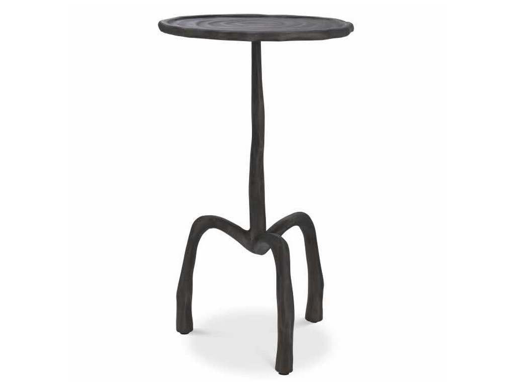 Product Description: Eichholtz 114886 Side Table Kubu S - Somewhat traditional in its design yet totally unique in its execution, Side Table Kubu S will stand the test of time. This extraordinary accent table looks like it was carved out of wood, but it was crafted from metal and provided with a bronze finish. Supported by a tall stand and curved tripod legs, the round tabletop has a raised edge and a relief that reminds one of year rings in a tree trunk.
