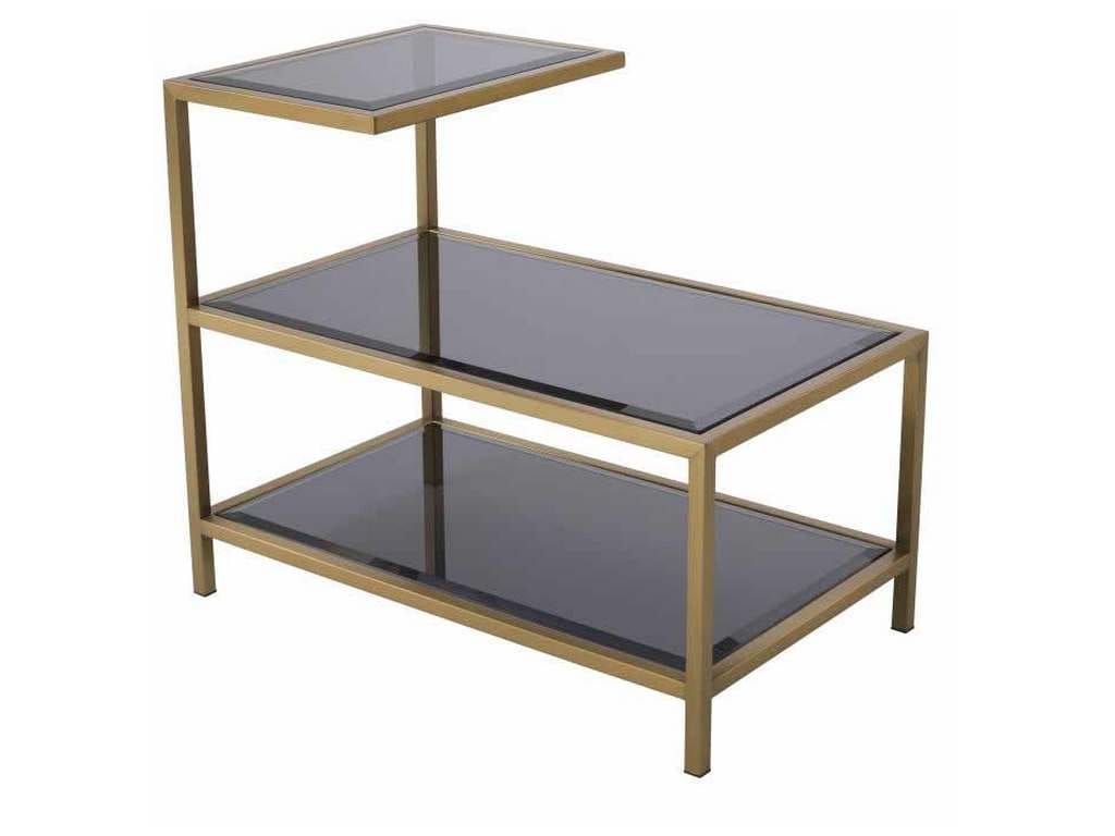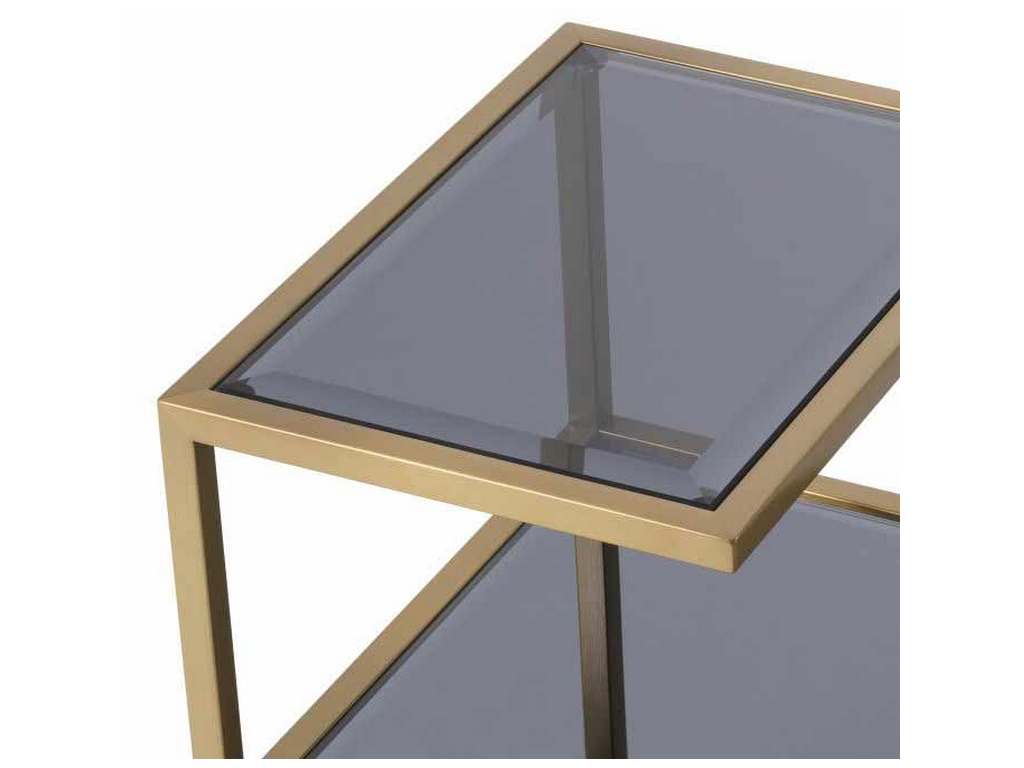 Product Description: Eichholtz 115421 Side Table Octava - Side Table Octava stands out by its extraordinary design. Consisting of a sleek brushed brass frame sculpture with bevelled plates of smoked glass, the top section is smaller than the shelves. The surfaces provide plenty of room for vases, bowls, cups, books, phones, and other accessories.