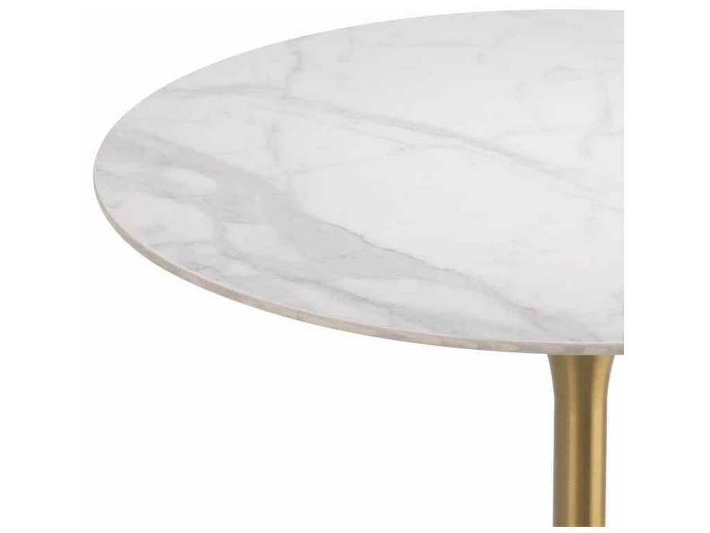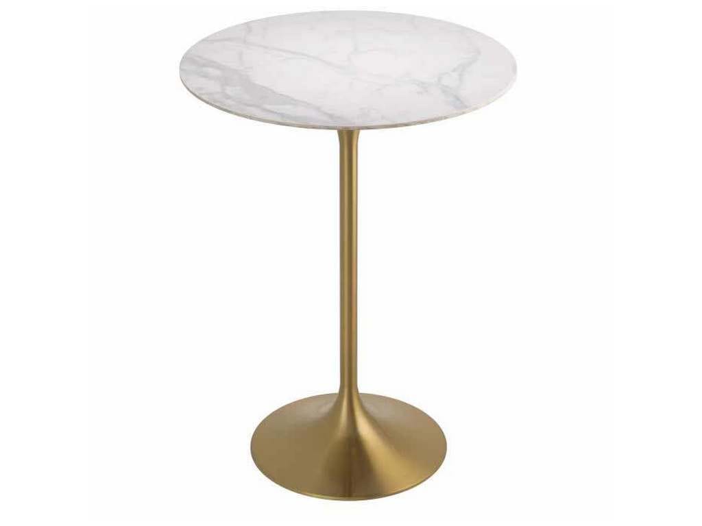 Product Description: Eichholtz 115558 Bar Table Tazio - Bar Table Tazio is a très chic translation of the classic standing cafe table. Its circular ceramic top with marble look is supported by a brushed brass column fanning out on both sides like a trumpet bell.