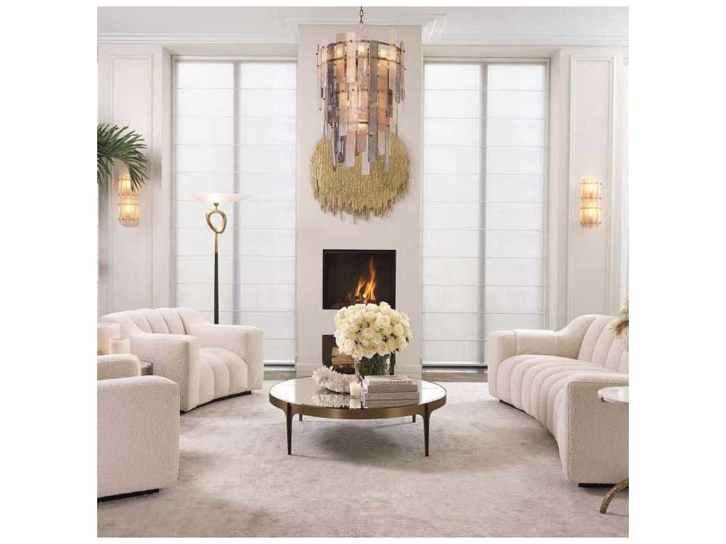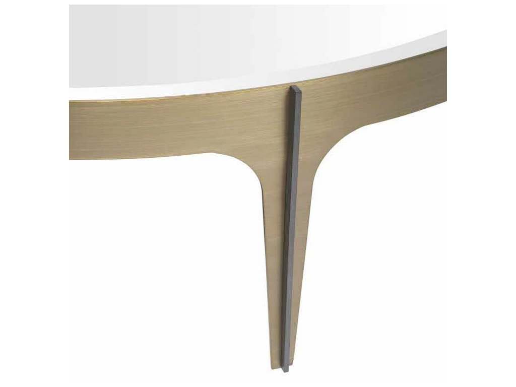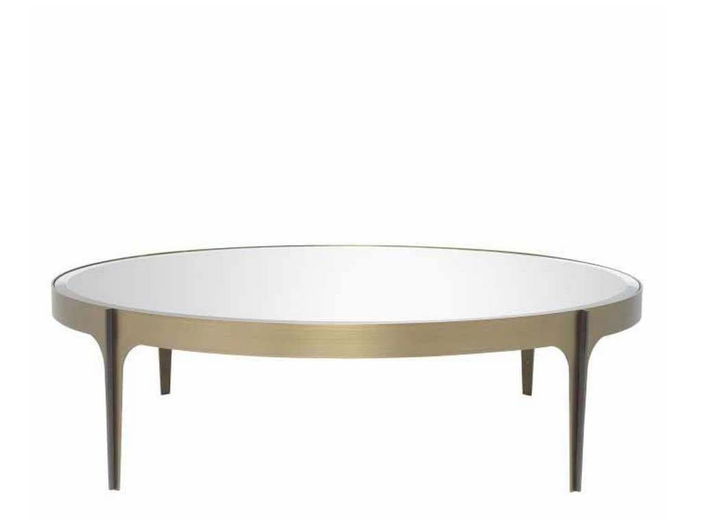 Product Description: Eichholtz 116139 Coffee Table Artemisa L - With a Mid-Century Modern design and chic appeal, the large Coffee Table Artemisa makes a statement with an elegant metal frame in a brushed brass finish. The interior curves of the frame are accentuated by sleek bronze bars on the legs and a round tabletop of bevelled mirror glass, bringing focus to the spaciousness within the solid materials shaping this piece. Combine with the small Artemisa Coffee Table for a balanced look.