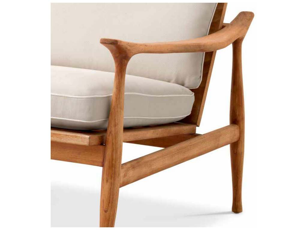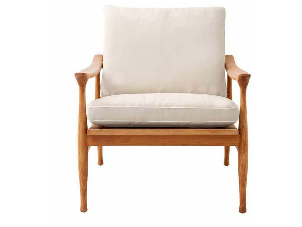 Product Description: Eichholtz 116226 Outdoor Chair Manzo - Take the lounge outside with the Manzo Chair crafted in durable solid teak. Sourced from sustainably managed forests, the open, angular Grade A teak frame with gracefully sloped armrests offers cool contrast to plush flores off-white canvas colorfast and water-repellent cushions (included). Durable enough to weather the elements, the outdoor Manzo Chair offers deep seating perfect for rest and relaxation.