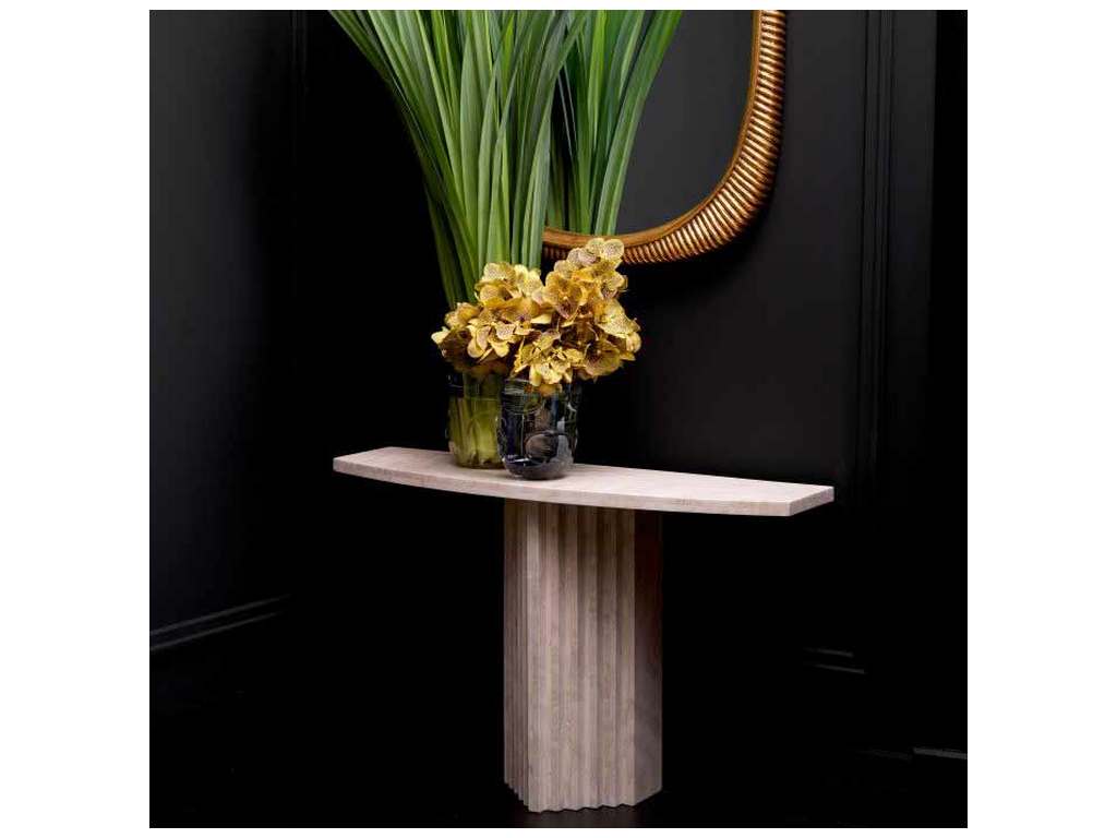 Product Description: Eichholtz 116756 Console Table Atzaro - With its streamlined silhouette, Console Table Atzaro looks like it came straight from 1930s Miami. Art Deco in style, this beautiful piece of furniture was skilfully crafted from travertine, which makes each piece entirely unique.