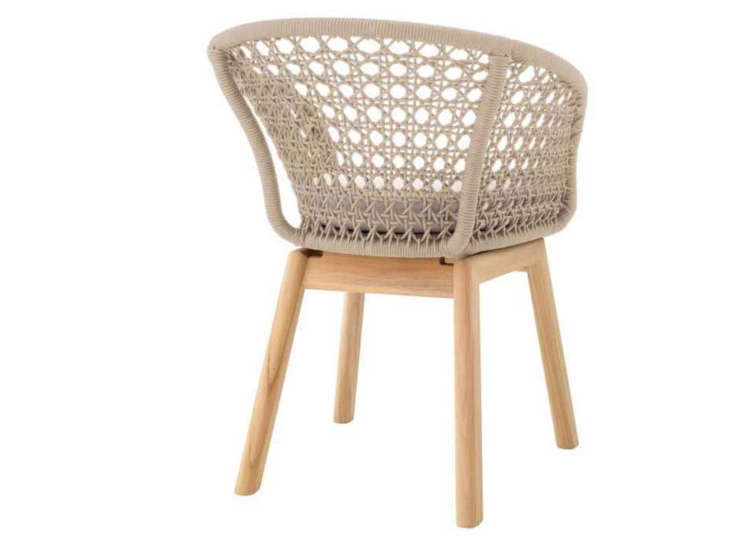 Product Description: Eichholtz 117014 Outdoor DIning Chair Trinity - The elegant Trinity Dining Chair is expertly crafted with sustainably sourced Grade A teak wood. The outdoor chair features a stylish rope woven pattern and a durable, water resistant upholstered cushion, both in cream color. Ideal for any outdoor dining area, the eco-friendly dining chair Trinity adds a touch of sophistication while supporting responsible sourcing practices.