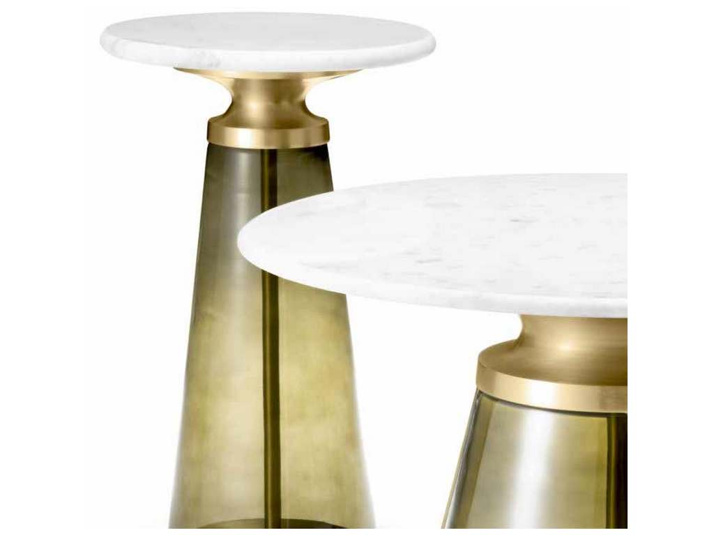Product Description: Eichholtz 117517 Side Table Norto Set of 3 - Trio of side tables featuring black glass tops and brushed brass bases. Chic and functional set. Can be arranged in various configurations. Large table: 20" D x 22" H. Medium table: 18" D x 20" H. Small table: 16" D x 18" H.