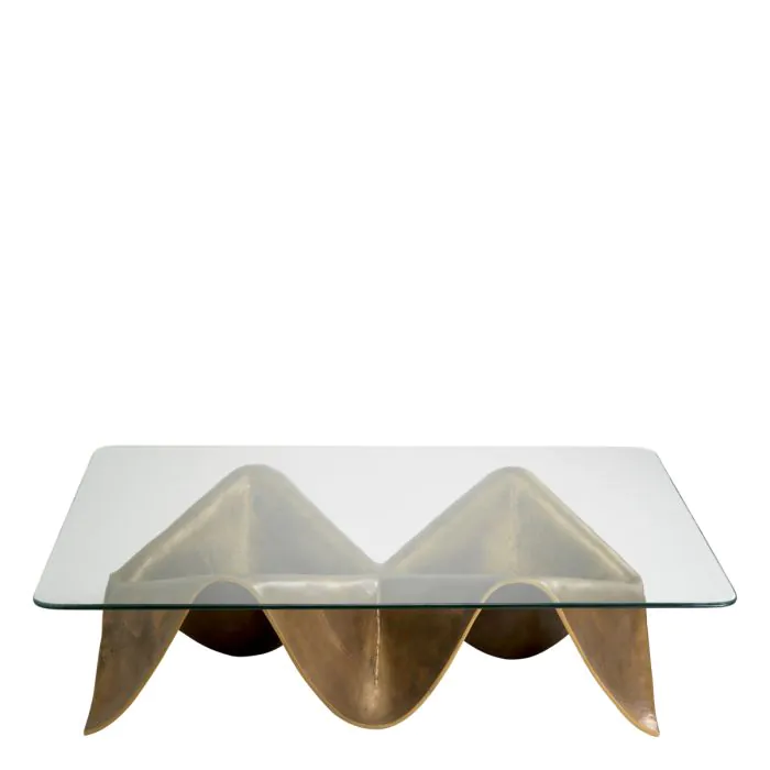 Product Description: Eichholtz 118113 Coffee Table Angelico - Infuse your living space with the timeless charm of the Angelico Coffee Table, a signature piece from Eichholtz.The table showcases an iconic vintage brass finish complemented by a clear glass top, through which the elegantly curved frame is visible, merging durability with luxury.