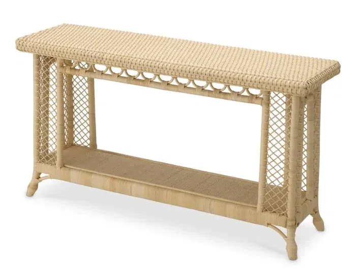 Product Description: Eichholtz 118623 Console Table Saba - Introducing the Eichholtz Console Table Saba, crafted from natural rattan. This versatile piece combines natural materials with elegant design, offering a perfect balance of functionality and style. The Saba Console Table from Eichholtz is ideal for adding a touch of organic beauty to your hallway or living room, complementing any decor with its understated sophistication and durability.