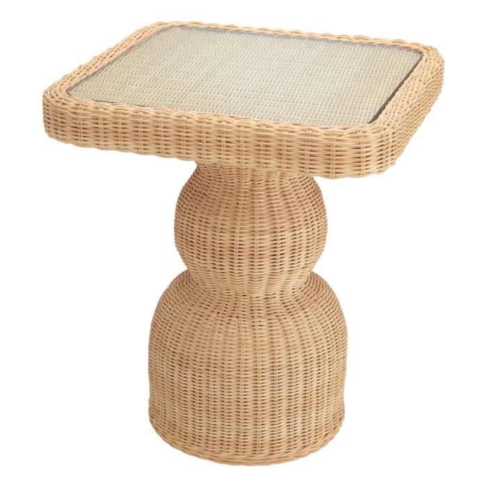 Product Description: Eichholtz 118624 Side Table Tiago - Introducing the Eichholtz Side Table Tiago, a harmonious blend of natural rattan and modern design. Handwoven with meticulous craftsmanship, this piece features a clear glass top that enhances its elegance and functionality. The warm, inviting rattan exudes timeless charm, making it a standout addition to any decor. Elevate your interior with the luxurious allure and impeccable style of the Tiago Side Table.