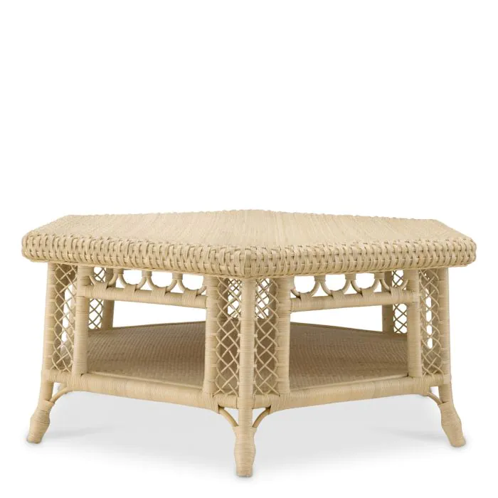 Product Description: Eichholtz 118674 Coffee Table Saba Hexagon - Introducing the Eichholtz Coffee Table Sabe Hexagon, crafted from natural rattan. This stylish piece showcases a modern hexagonal design, blending natural materials with contemporary aesthetics. Perfect for adding a touch of organic charm to your living space, the Sabe Hexagon Coffee Table from Eichholtz combines functionality with elegant simplicity, making it an ideal centerpiece for any decor style.