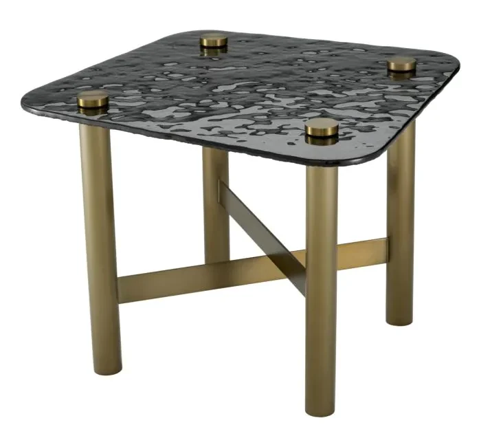 Product Description: Eichholtz 119022 Side Table Cortes - The Eichholtz Cortes Side Table is a stunning piece that exudes contemporary elegance. The textured smoke glass top adds a touch of sophistication, while the brushed brass finish on the base provides a luxurious and modern look. With its unique design and high-quality materials, the Eichholtz Side Table Cortes is a perfect addition to any stylish living space.
