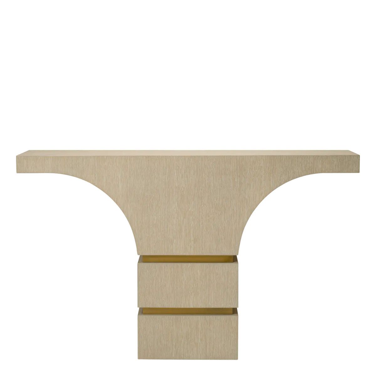 Product Description: Eichholtz 119187 Console Table Thaddeus - Elevate your interior with the Console Table Thaddeus, featuring a chic washed oak veneer and sleek brushed brass finish. This refined piece beautifully balances contemporary design with timeless appeal, capturing the essence of luxury furniture. Perfect for discerning tastes, Thaddeus offers a sophisticated focal point that transforms any setting into a realm of elegance.