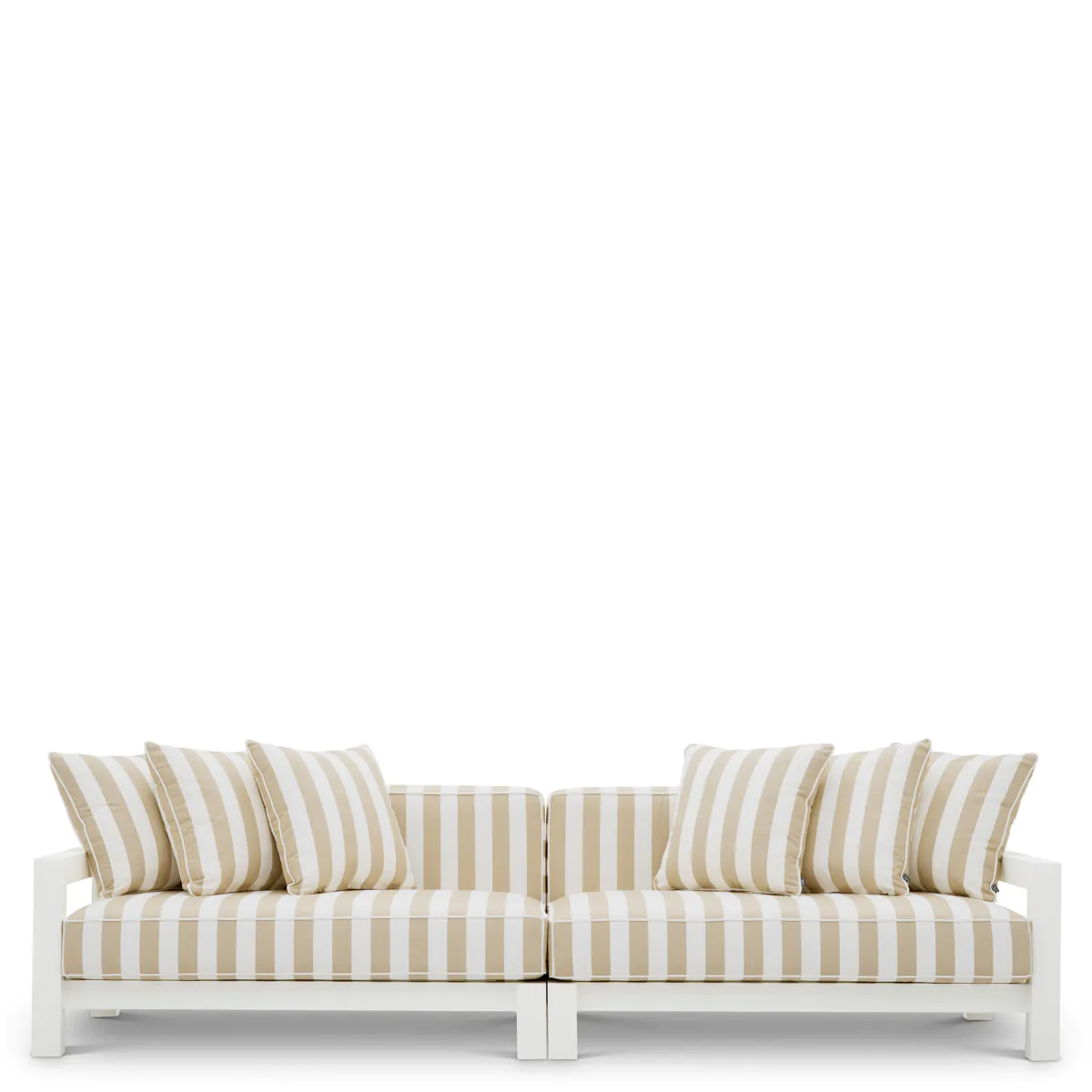 Product Description: Eichholtz 119577 Outdoor Sofa Cap Antibes - Elevate your outdoor sanctuary with the Outdoor Sofa Cap-Antibes.Its sophisticated matte white aluminum frame harmonizes with Florent beige, a chic striped fabric of unparalleled elegance. Designed for discerning tastes, this ensemble promises enduring style and comfort, effortlessly transforming any space into a haven of luxury. Cushions included.