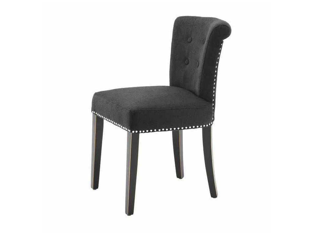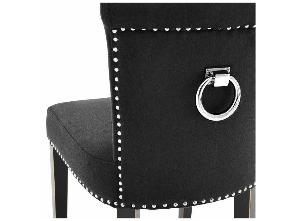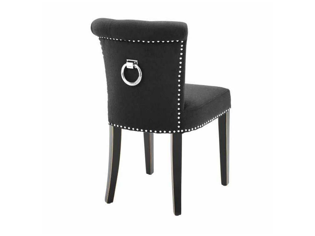 Product Description: Eichholtz A105081 Dining Chair Key Large - Pull the Key Largo Dining Chair up to your dining room table to enjoy sumptuous dinners with friends and family. A modern twist on classic style, this charming dining chair with black cashmere upholstery, nickel studs and handle detail, and black legs offers the perfect accent for luxury entertaining.