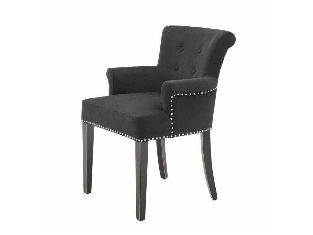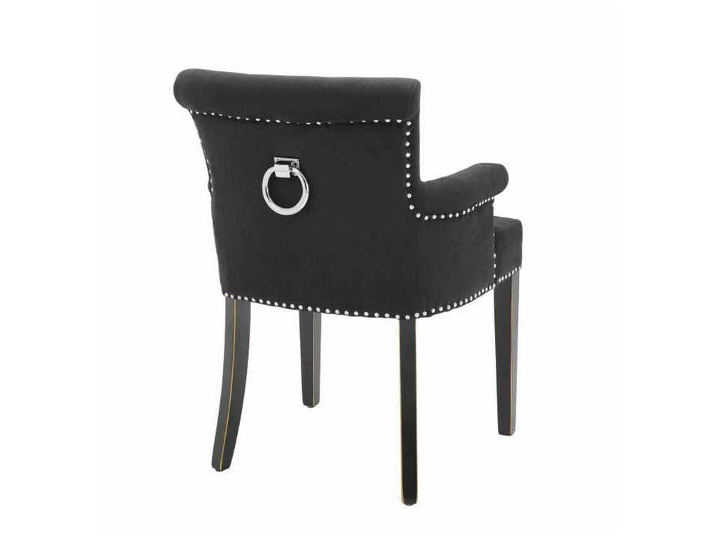 Product Description: Eichholtz A107635 Dining Chair Key Largo With Arm - Pull the Key Largo Dining Chair with arms up to your dining room table to enjoy sumptuous dinners with friends and family. A modern twist on classic style, this charming dining chair with black cashmere upholstery, nickel studs and handle detail, and black legs offers the perfect accent for luxury entertaining.