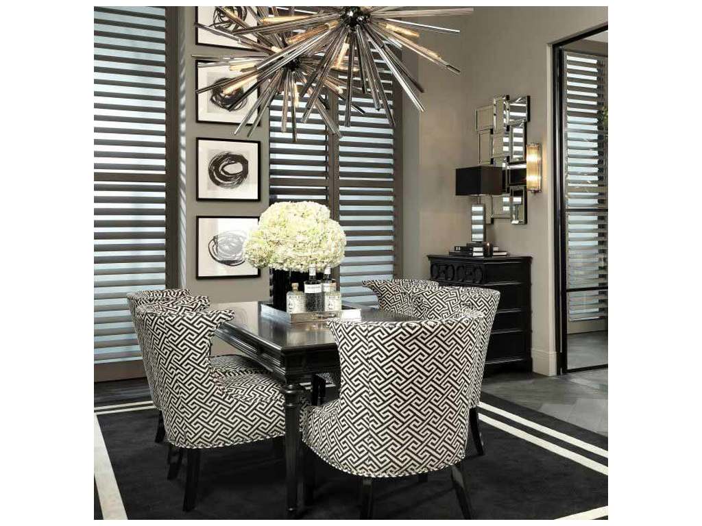 Product Description: Eichholtz A109839 Chair Elson - Bring versatile appeal to your well-appointed home with the sophisticated Dudley black & white upholstered Elson Chair. With its elegant curved back, black wood legs, and nickel stud detailing, this monochrome chair will make an ultra-chic focal point in your dining area, lounge or bedroom.