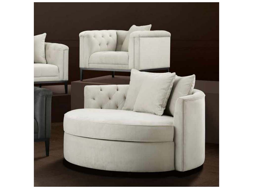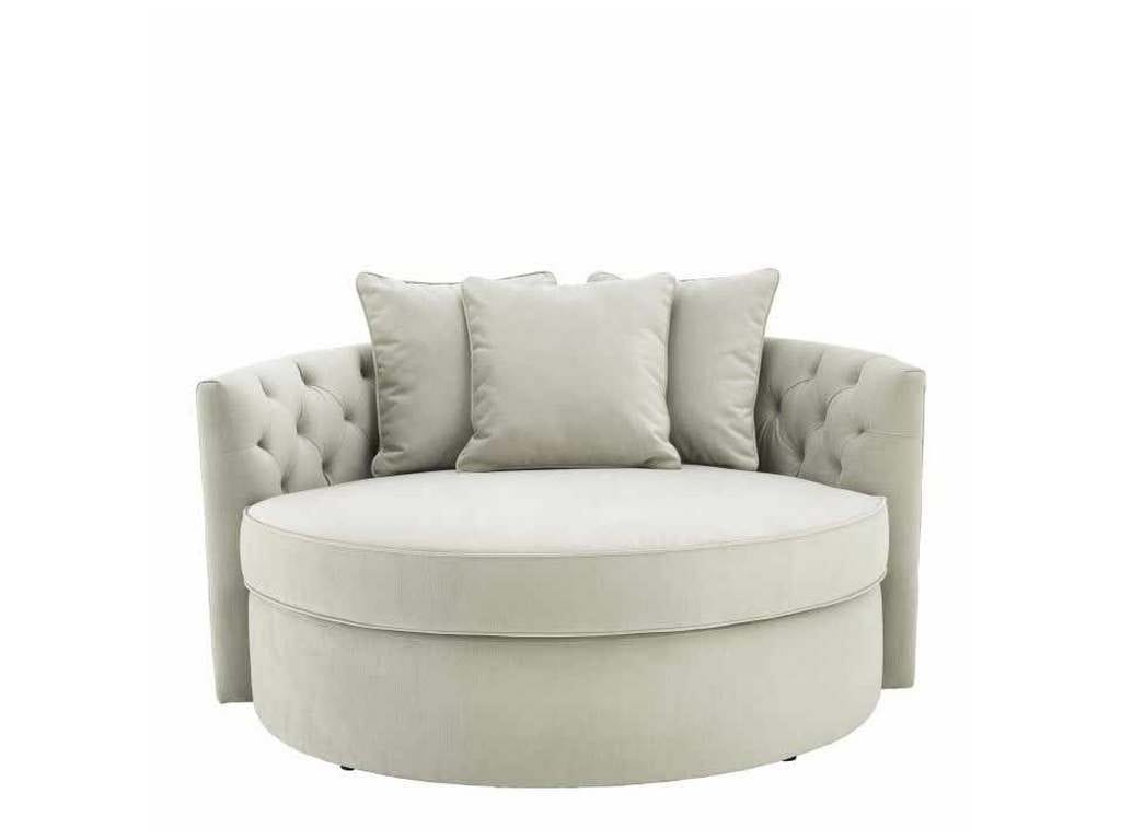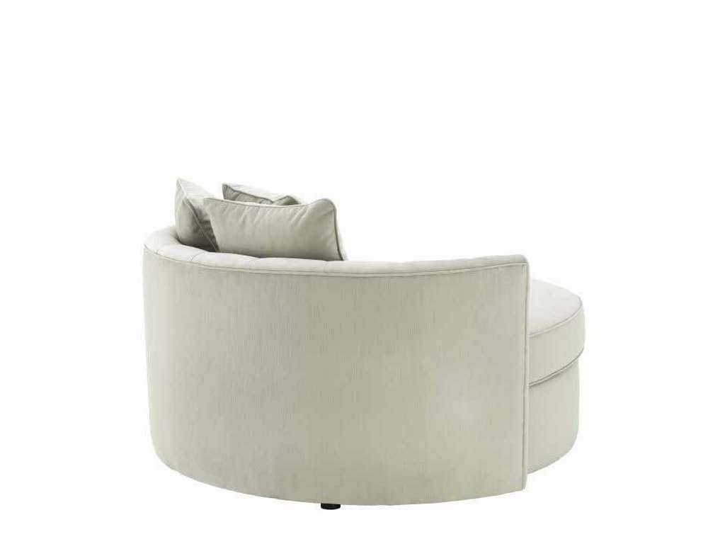Product Description: Eichholtz A111054 Sofa Carlita - Create an island of relaxation in your living space with the sumptuous Carlita Sofa. This gorgeous round sofa features a pebble grey upholstery and a deep-buttoned backrest. It comes with three cushions for extra comfort and cosyness.