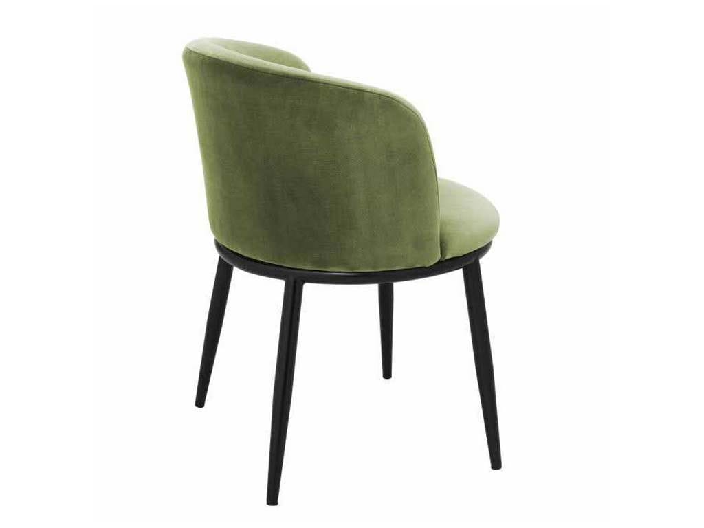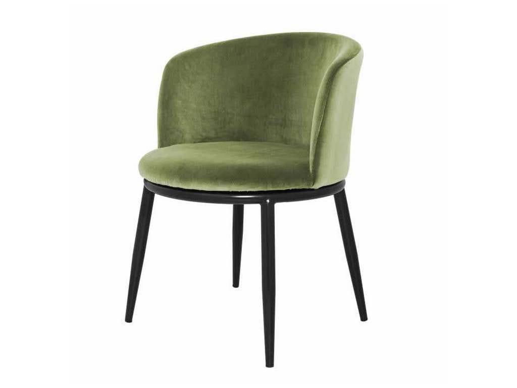Product Description: Eichholtz A111996 Dining Chair Filmore Set of 2 - Add vintage charm to your dining room or kitchen with this attractive set of 2 Filmore Dining Chairs. The black frames with tapered legs feature a round seat with a bent backrest in Cameron light green upholstery.