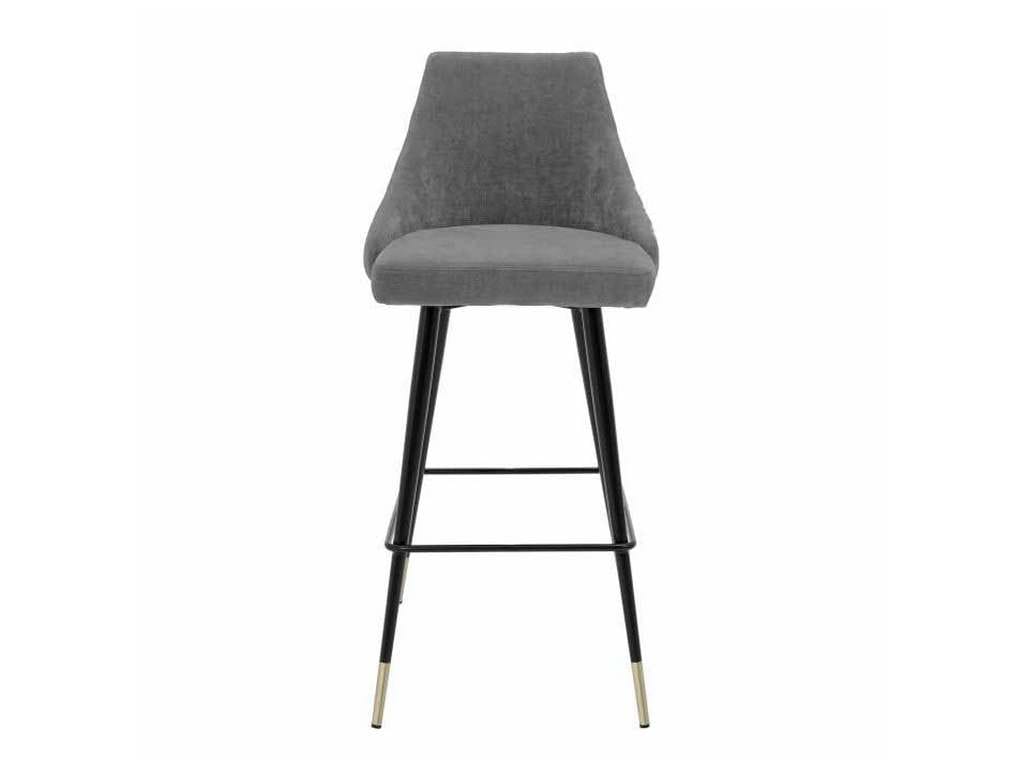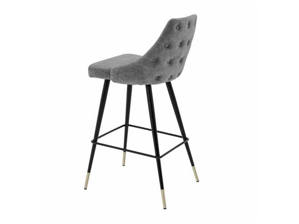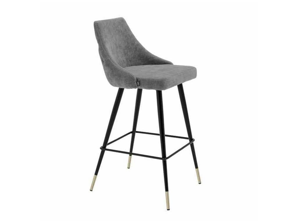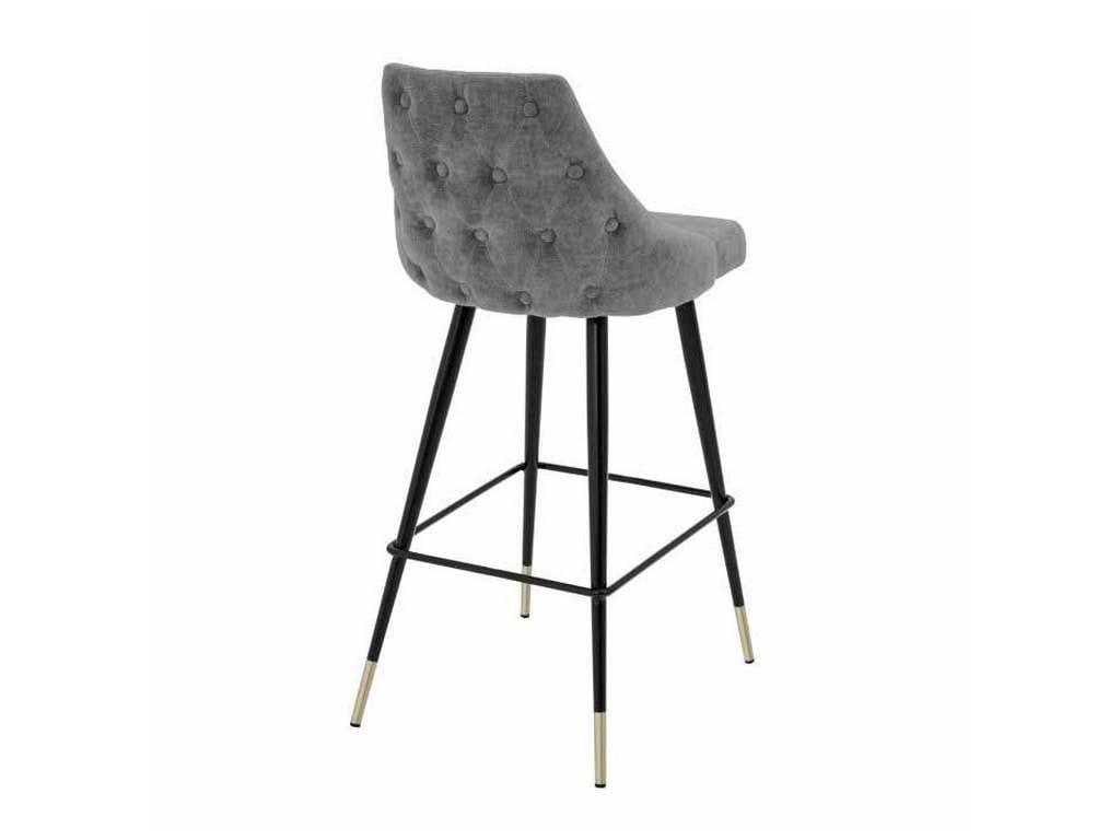 Product Description: Eichholtz A112058 Bar Stool Cedro - Bring Mid-Century Modern charm into your home with the Cedro Bar Stool. Featuring a clarck grey upholstered seat with button back and black tapered legs with brass caps, this vintage style furniture piece will grant your decor a retro look and feel.