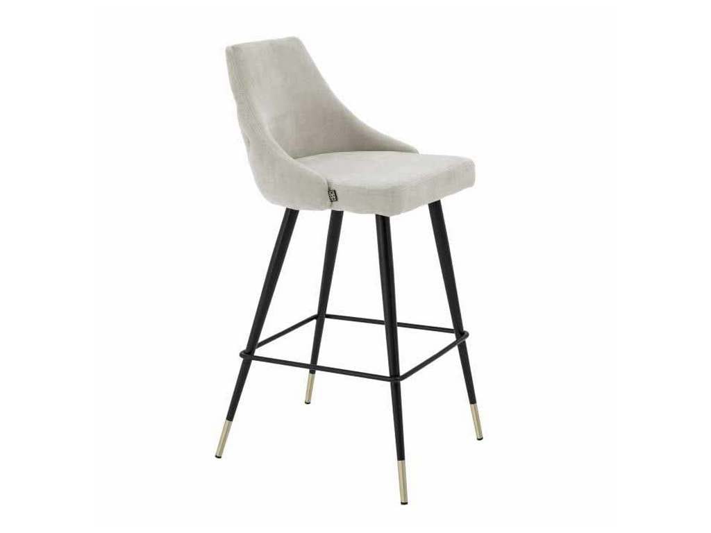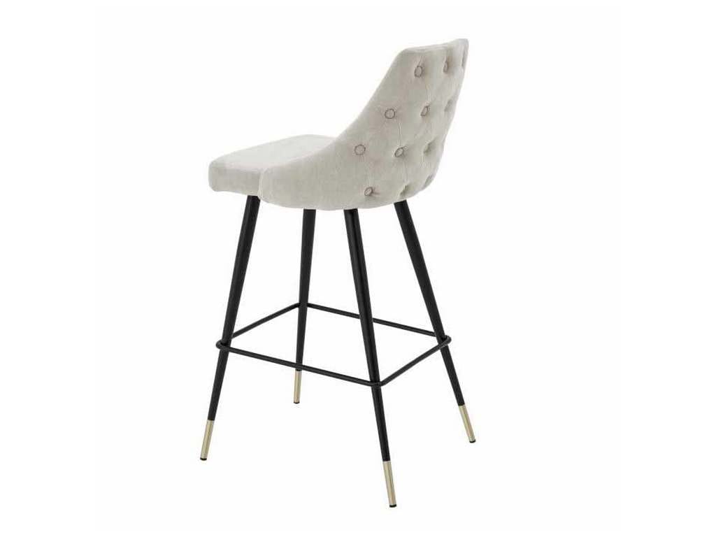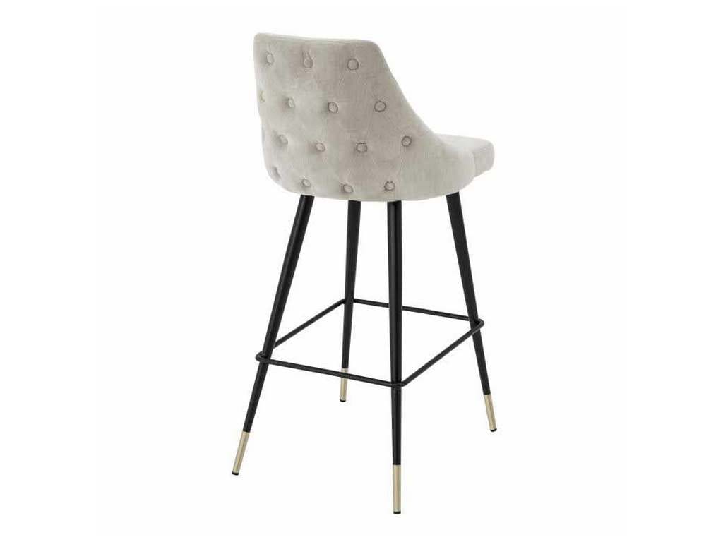 Product Description: Eichholtz A112060 Bar Stool Cedro - Bring Mid-Century Modern charm into your home with the Cedro Bar Stool. Featuring a clarck sand upholstered seat with button back and black tapered legs with brass caps, this vintage style furniture piece will grant your decor a retro look and feel.