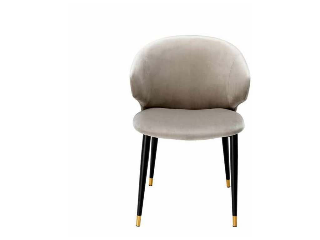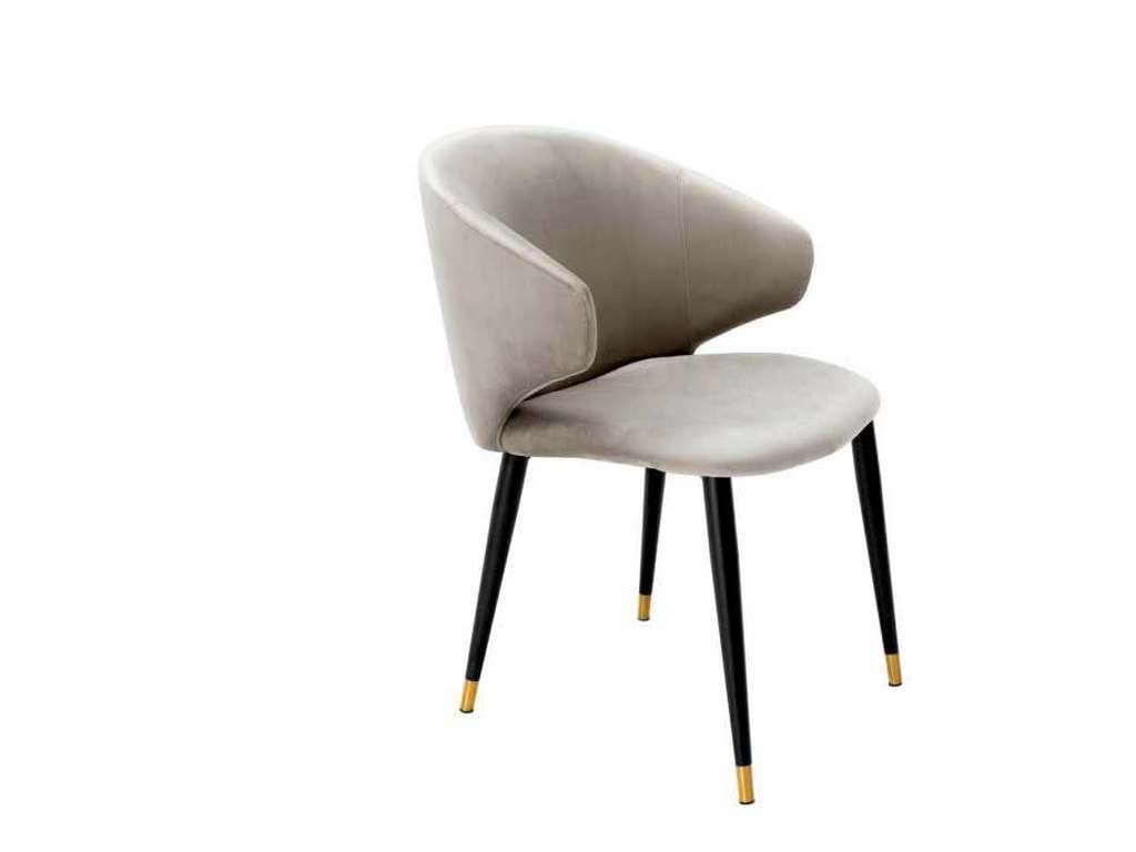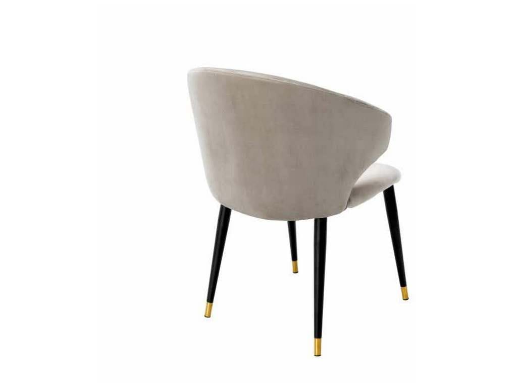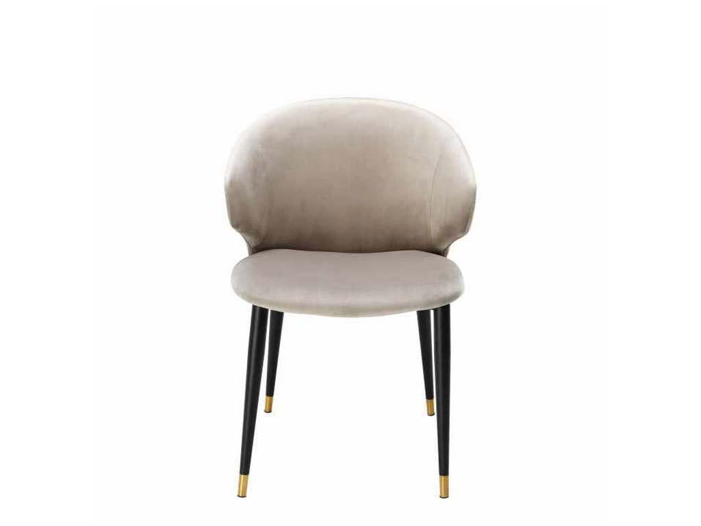 Product Description: Eichholtz A112777 Dining Chair Volante - Add Mid-Century Modern appeal to your dining room or kitchen with the Volante Dining Chair. Its black frame with sleek tapered legs and brass caps features a seating and backrest in a Roche beige velvet upholstery. Team up different chairs from this series for a charming vintage style!